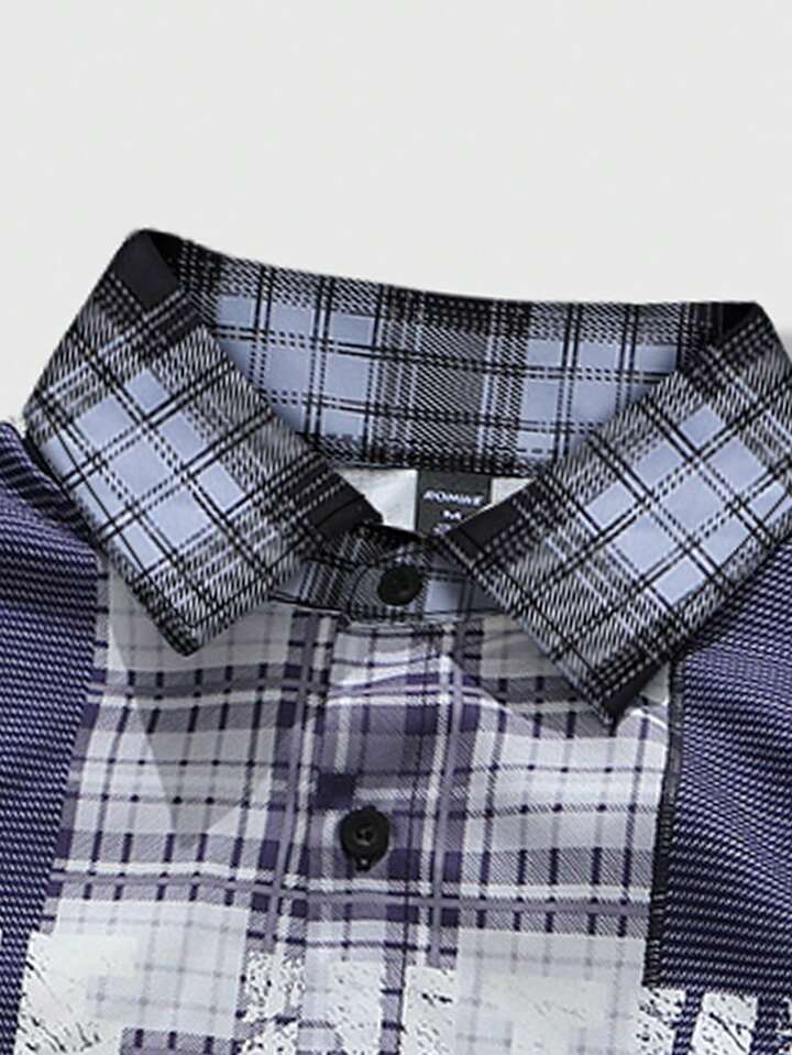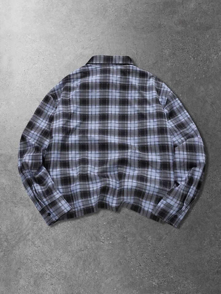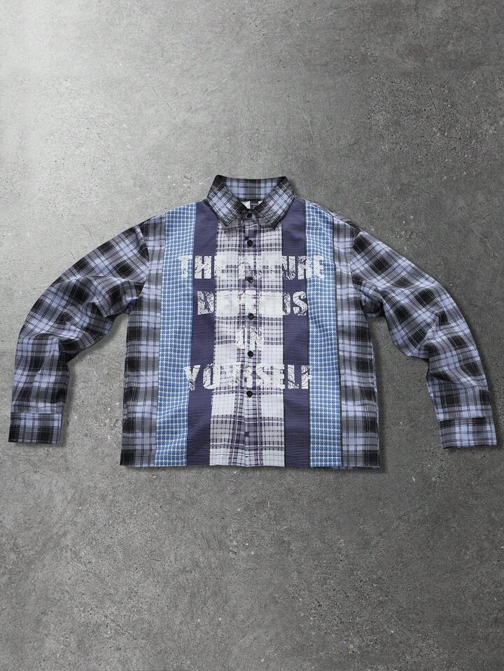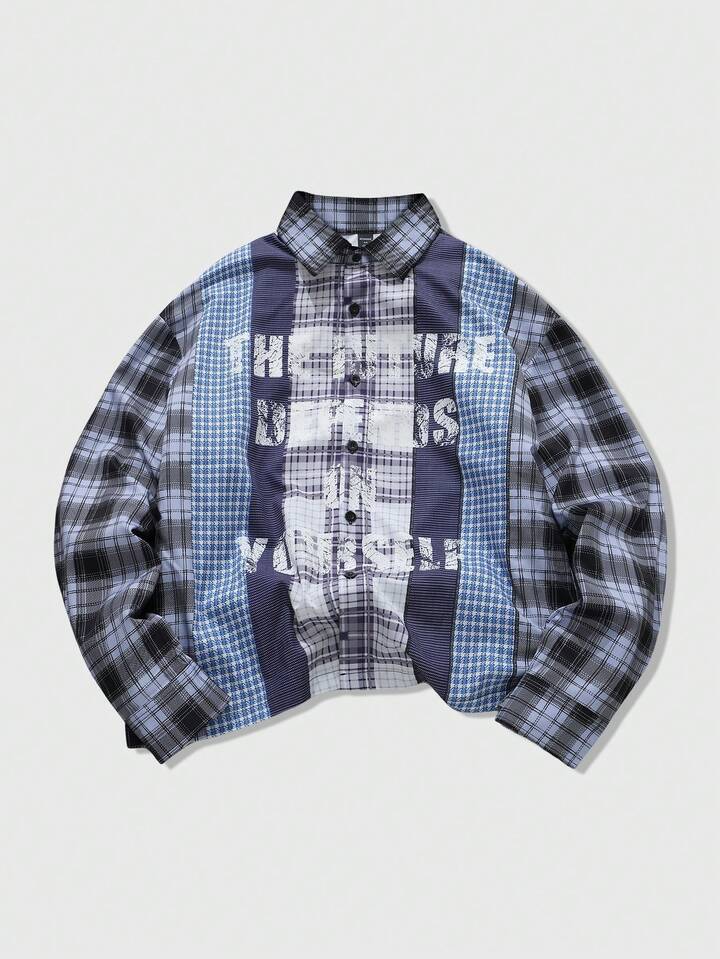 Camisa de manga larga a cuadros con parches para hombre, estilo callejero estadounidense, primavera/otoño