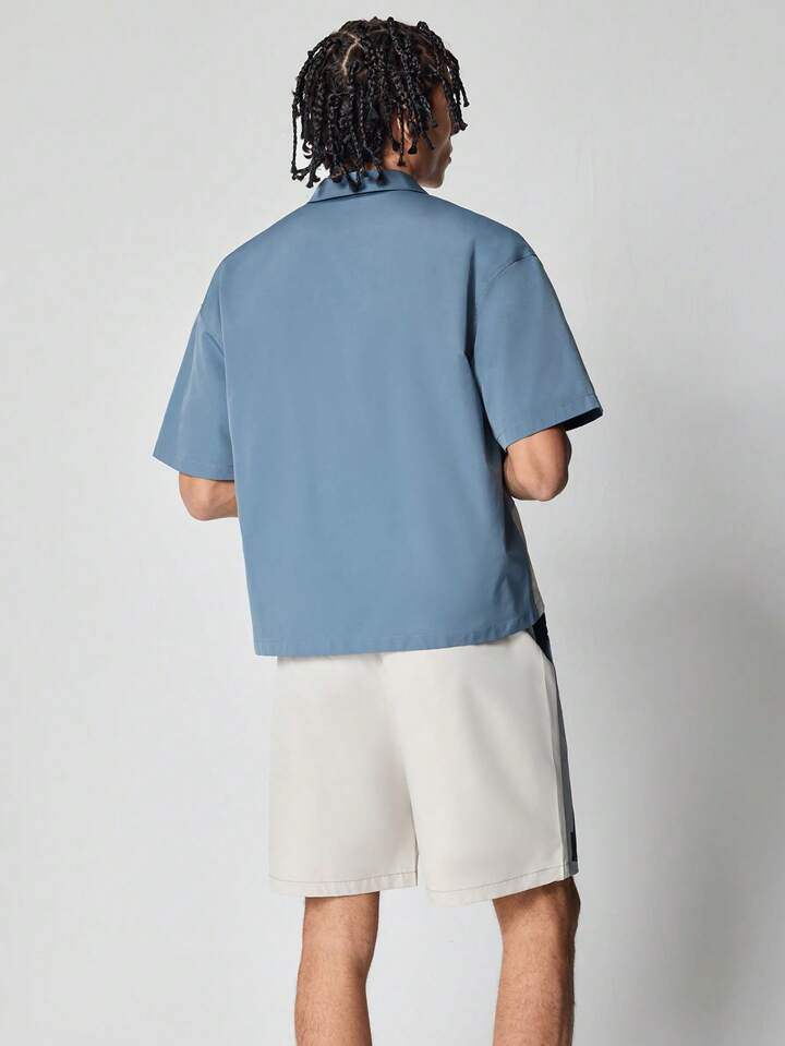 Prep Conjunto de camisa de manga corta y pantalones cortos con bloqueo de color y estampado de letra estilo universitario para hombres