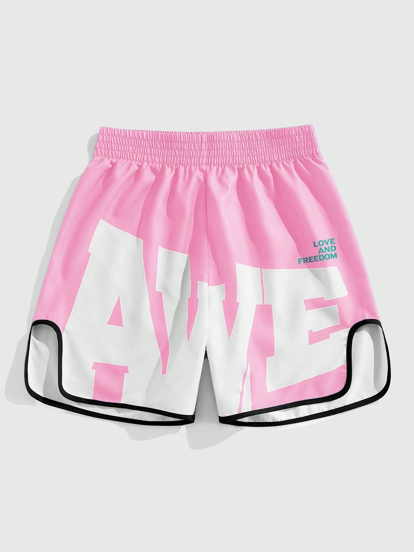 Prep Pantalones cortos casuales con estampado gráfico de letras para hombre, primavera/verano