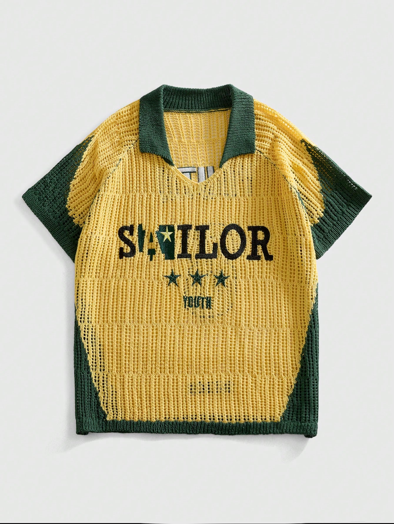 Suéter de punto con cuello polo y estampado de fútbol retro para hombre