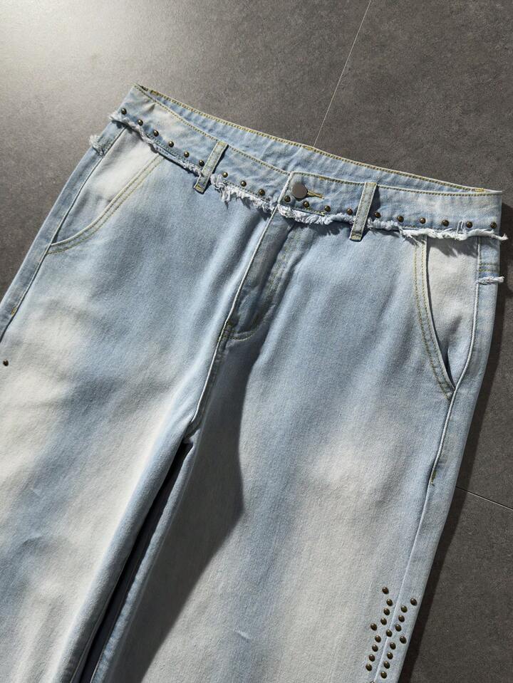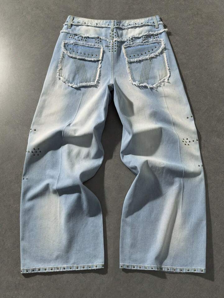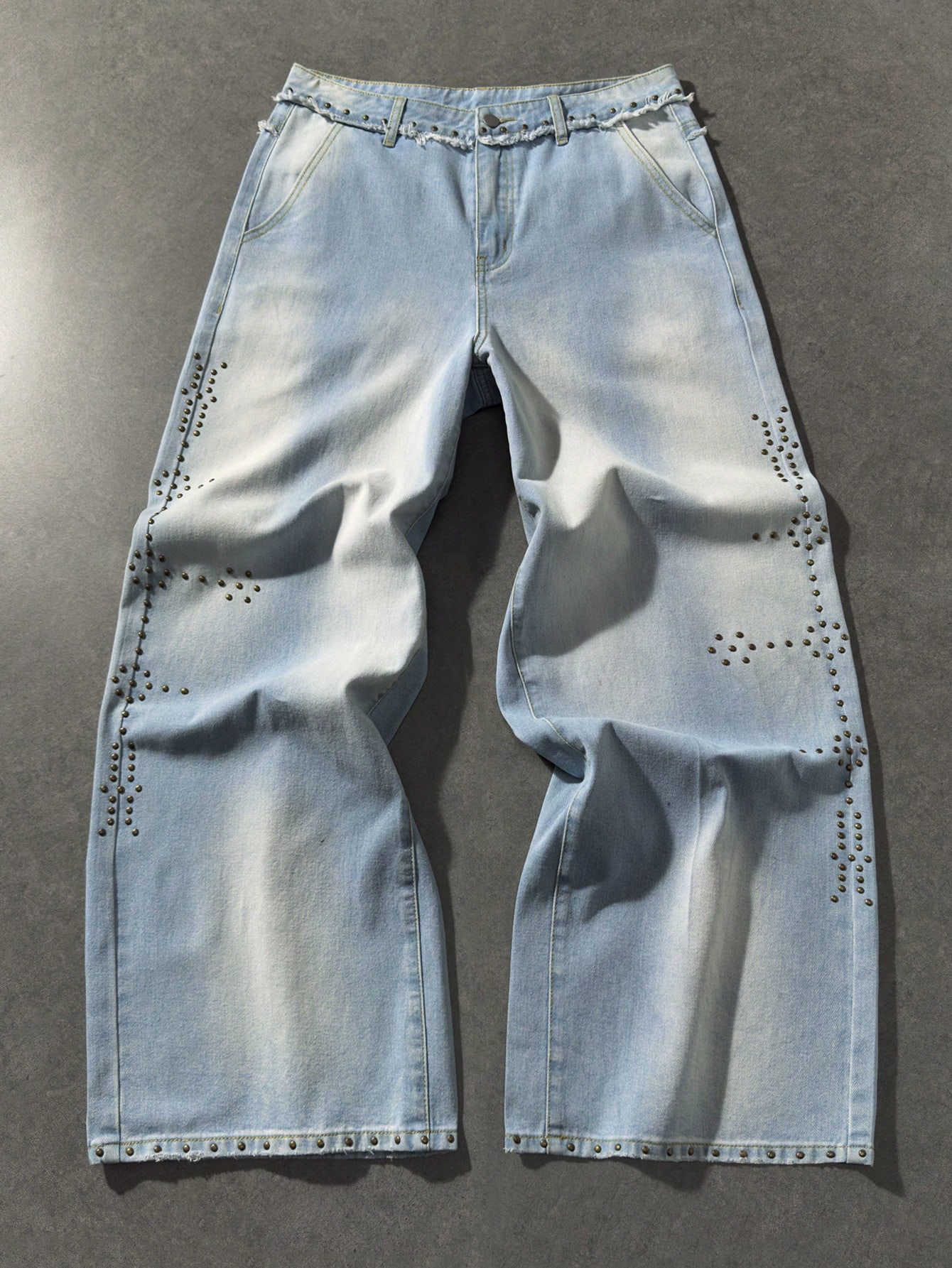 Jeans de pierna ancha y ajuste holgado con decoración de remaches para hombres