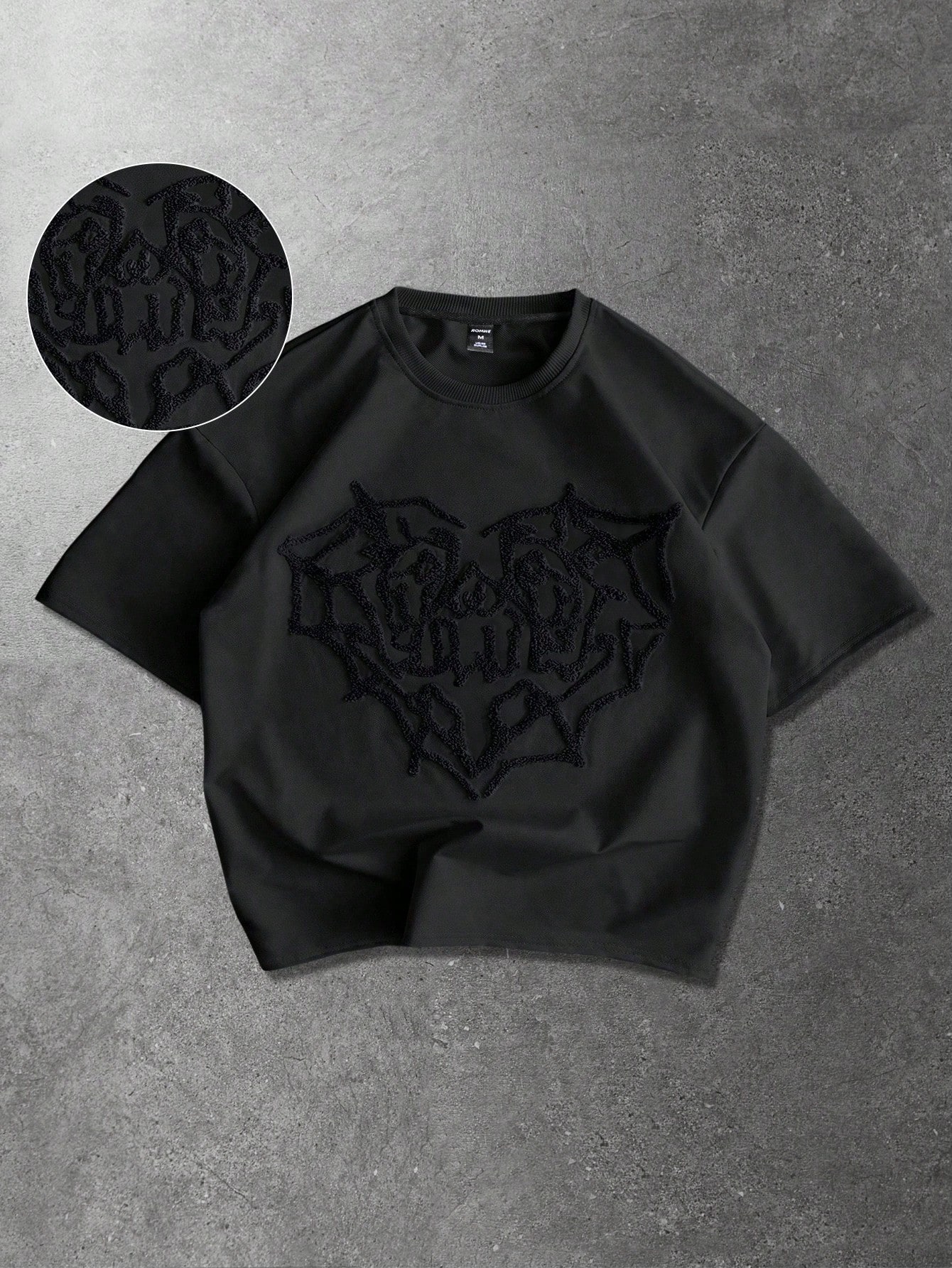 Camiseta de manga corta de cuello redondo con bordado de corazón, de uso casual y versátil para uso diario para hombres