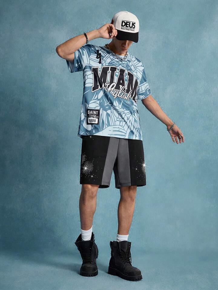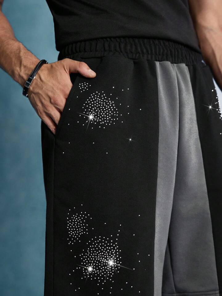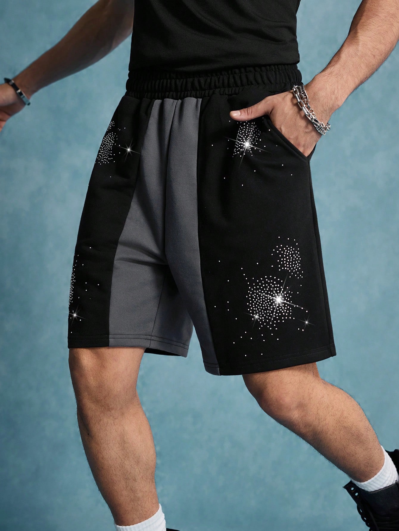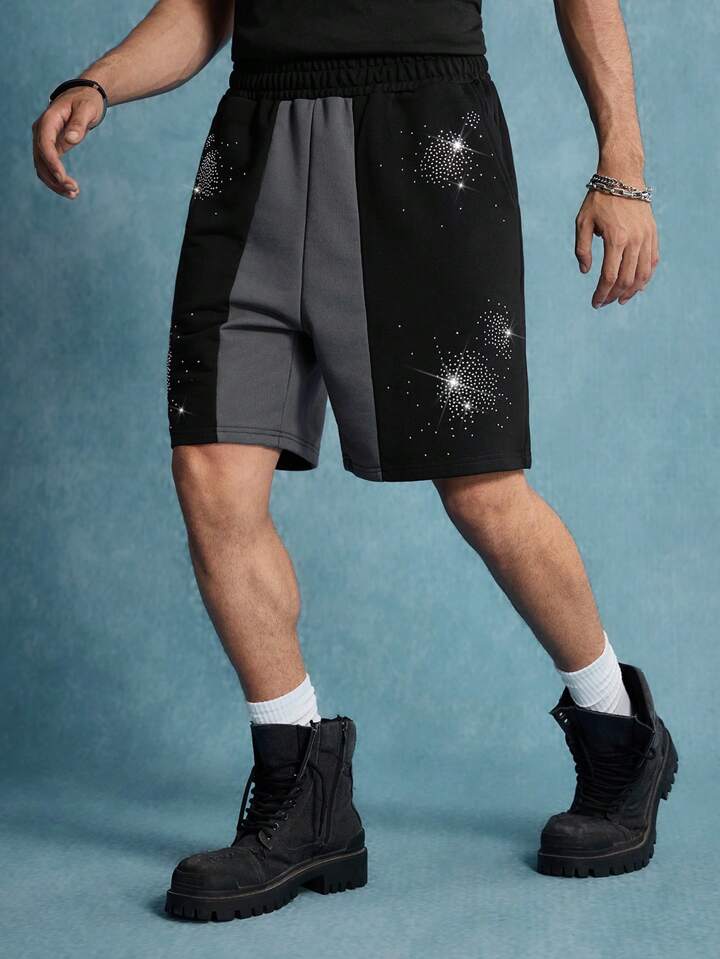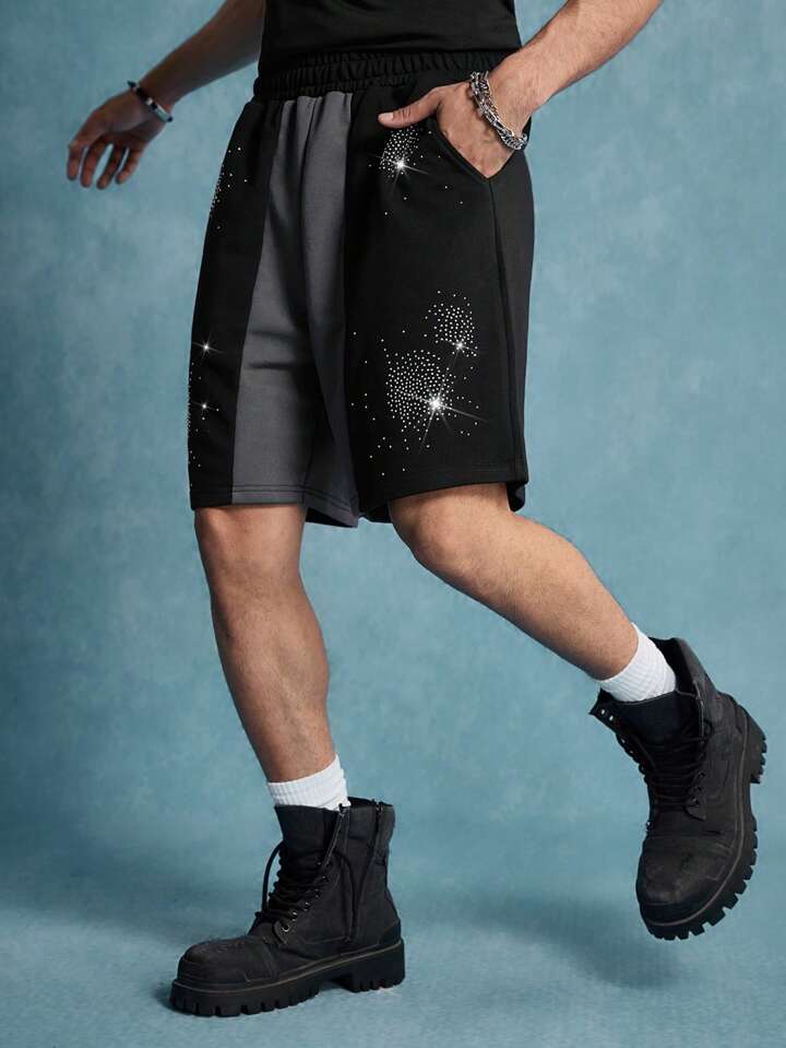 Grunge Punk Pantalones cortos casuales para hombres con adornos de diamantes sencillos
