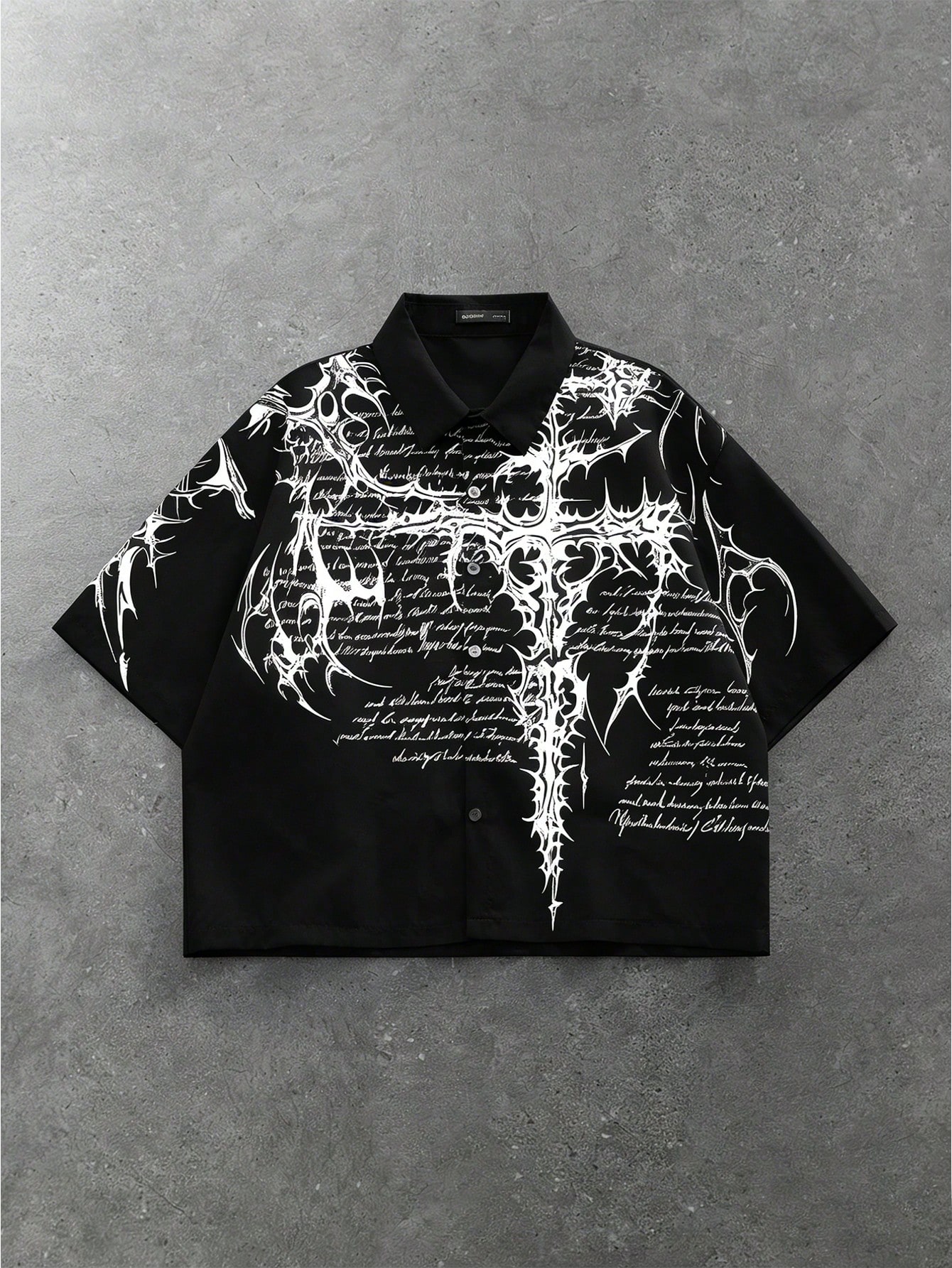 Camisa casual de manga corta con estampado de cruz y eslogan para hombres