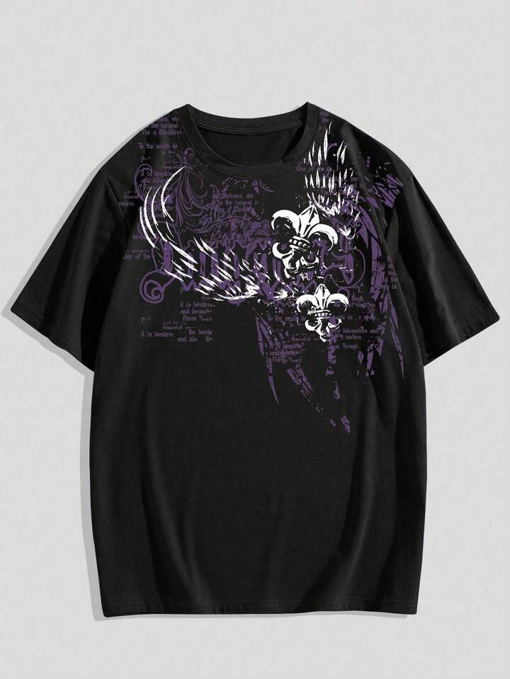 Goth Camiseta de manga corta de cuello redondo con estampado de eslogan, corte holgado y casual para hombre
