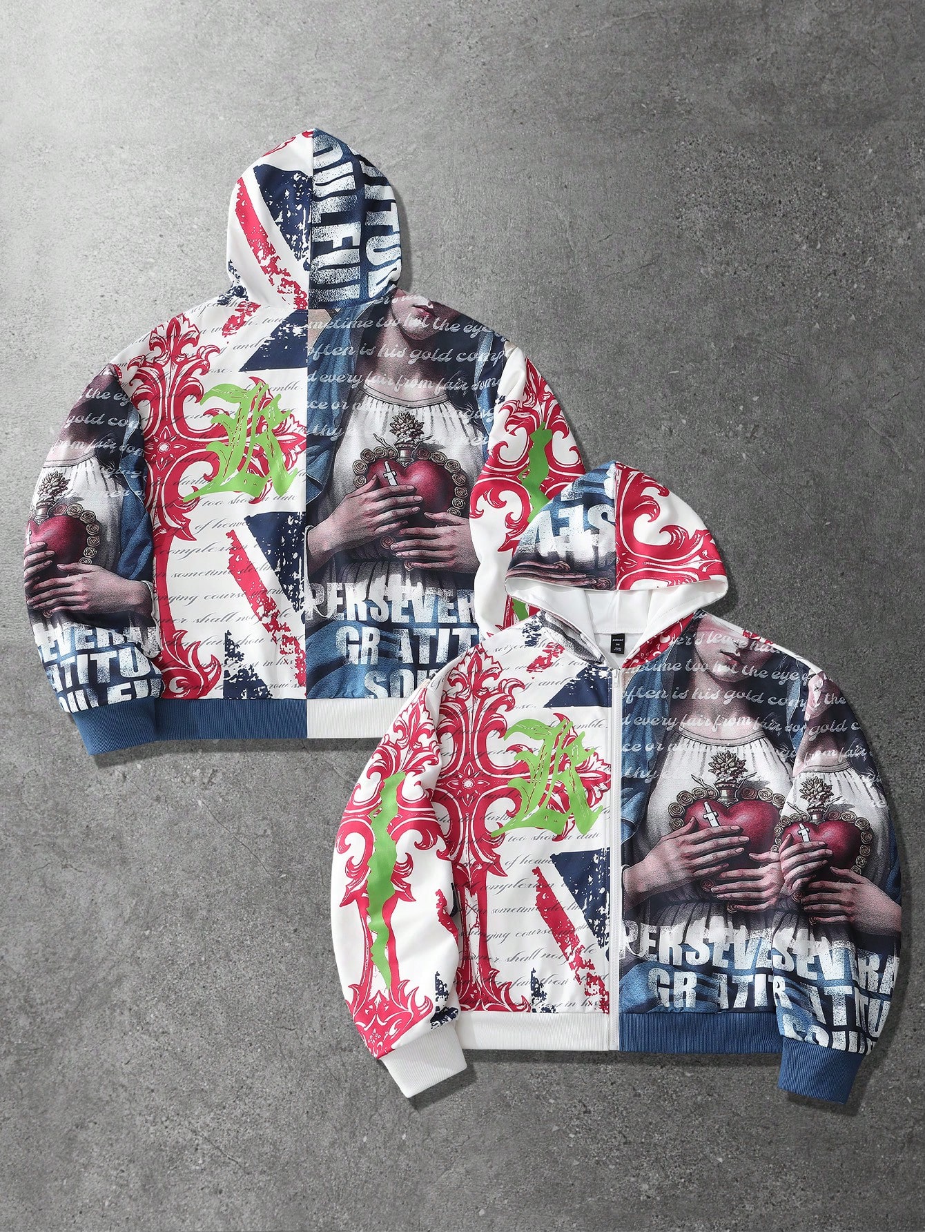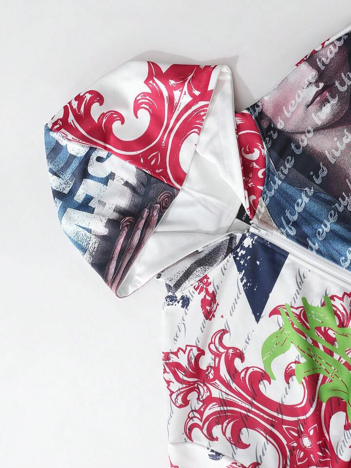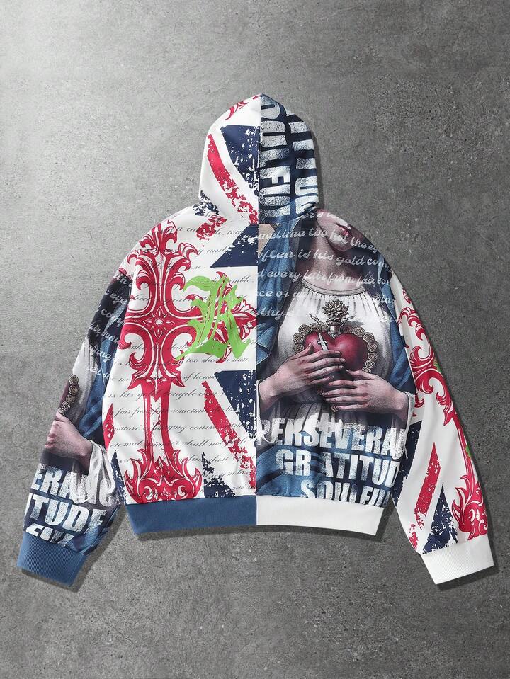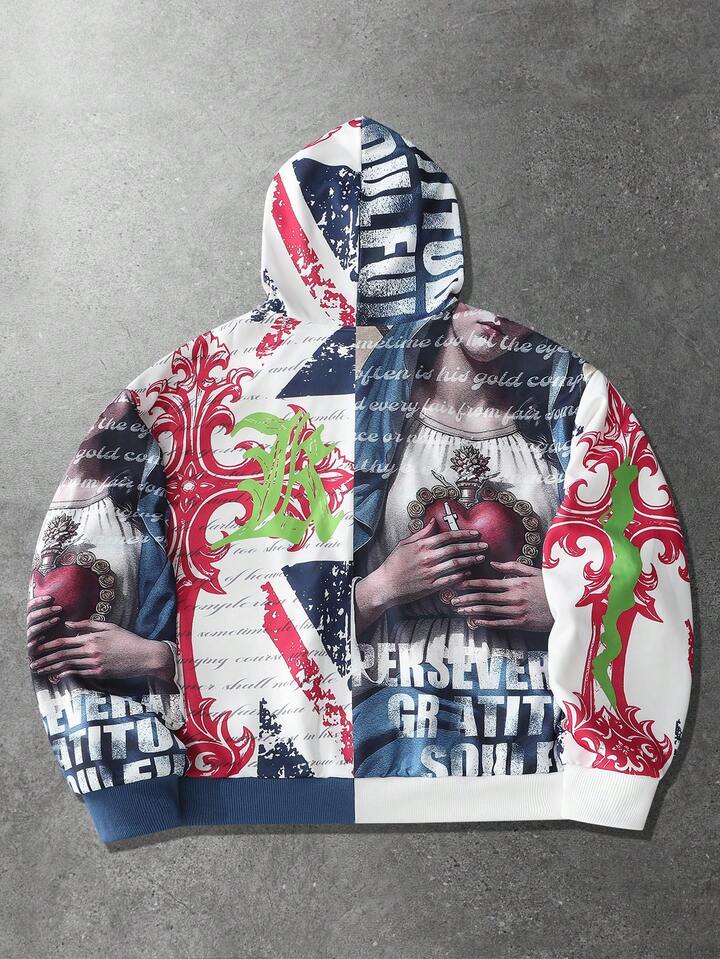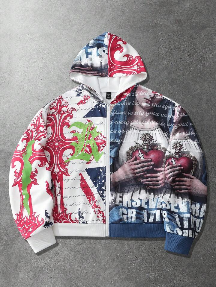 Sudadera con capucha casual con cremallera y estampado de eslogan para hombre