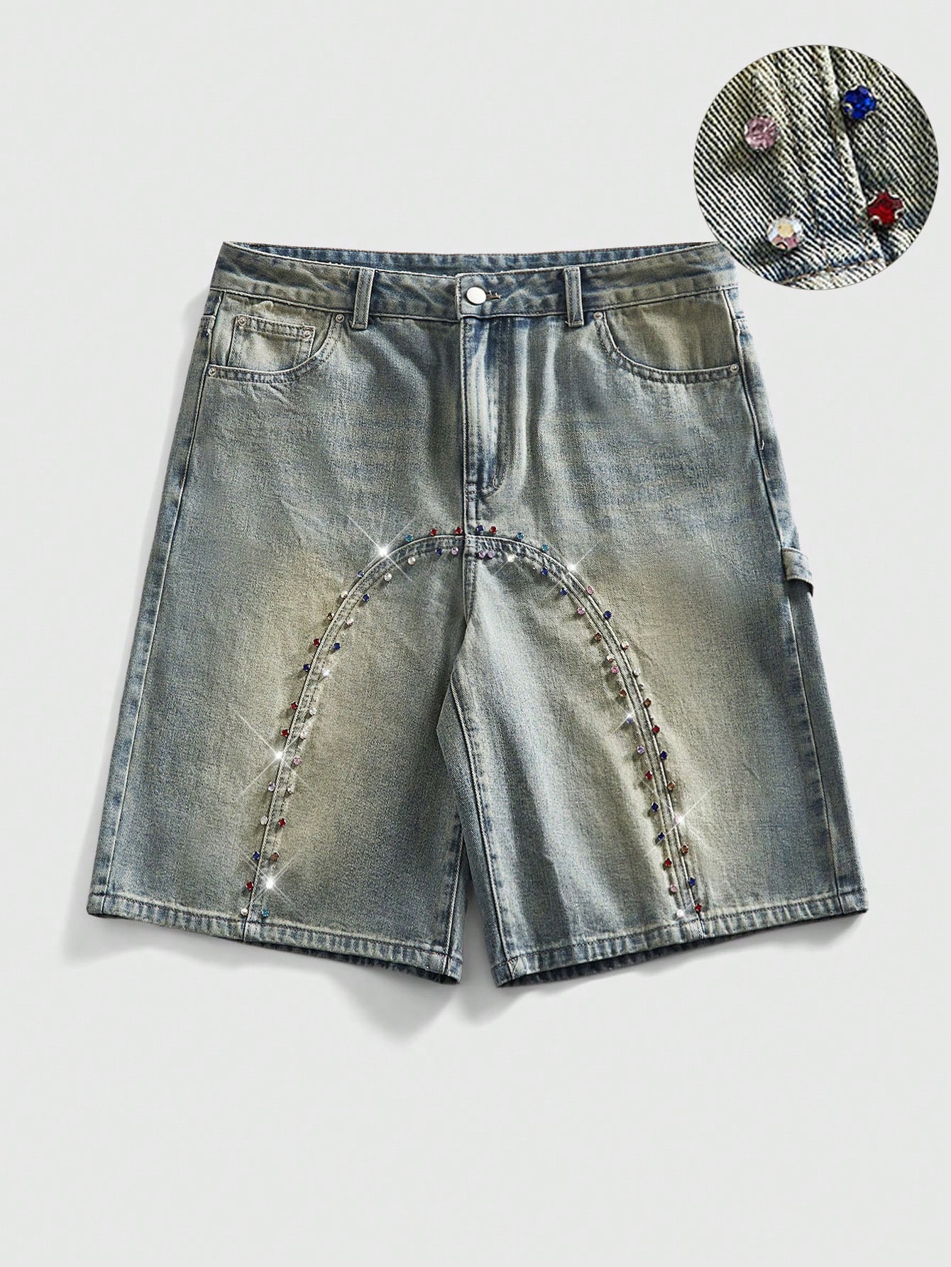 Pantalones cortos vaqueros sueltos con diamantes brillantes para hombres