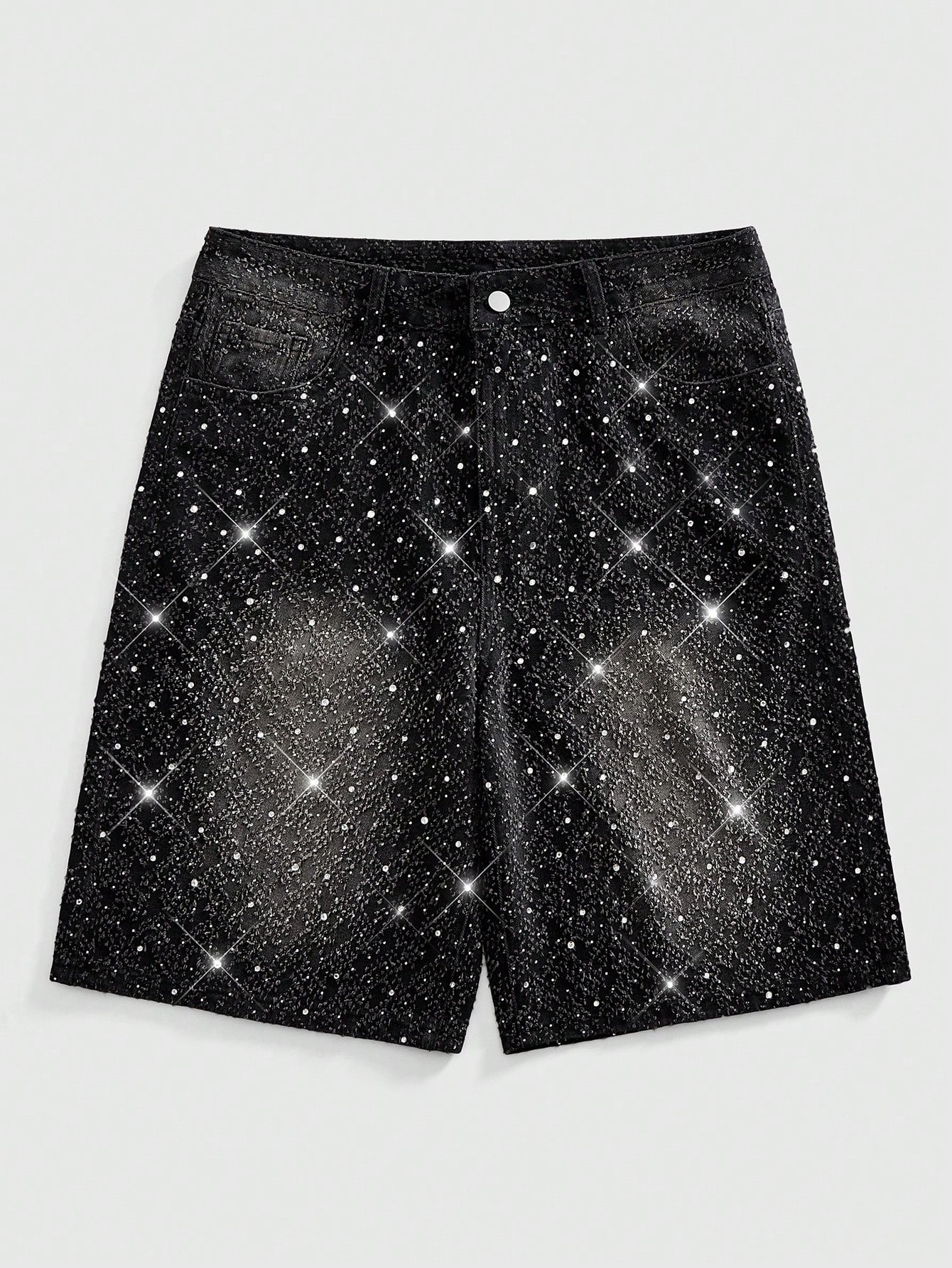 Pantalones cortos de mezclilla sueltos con diamantes brillantes para hombres