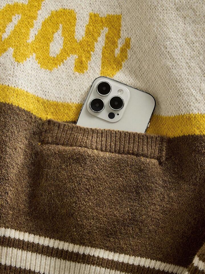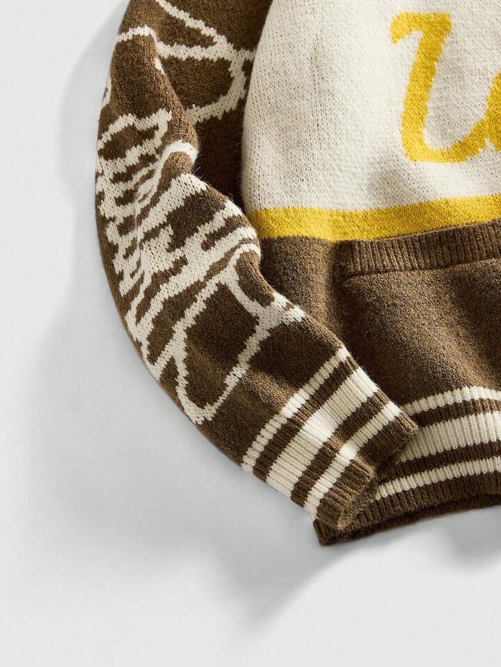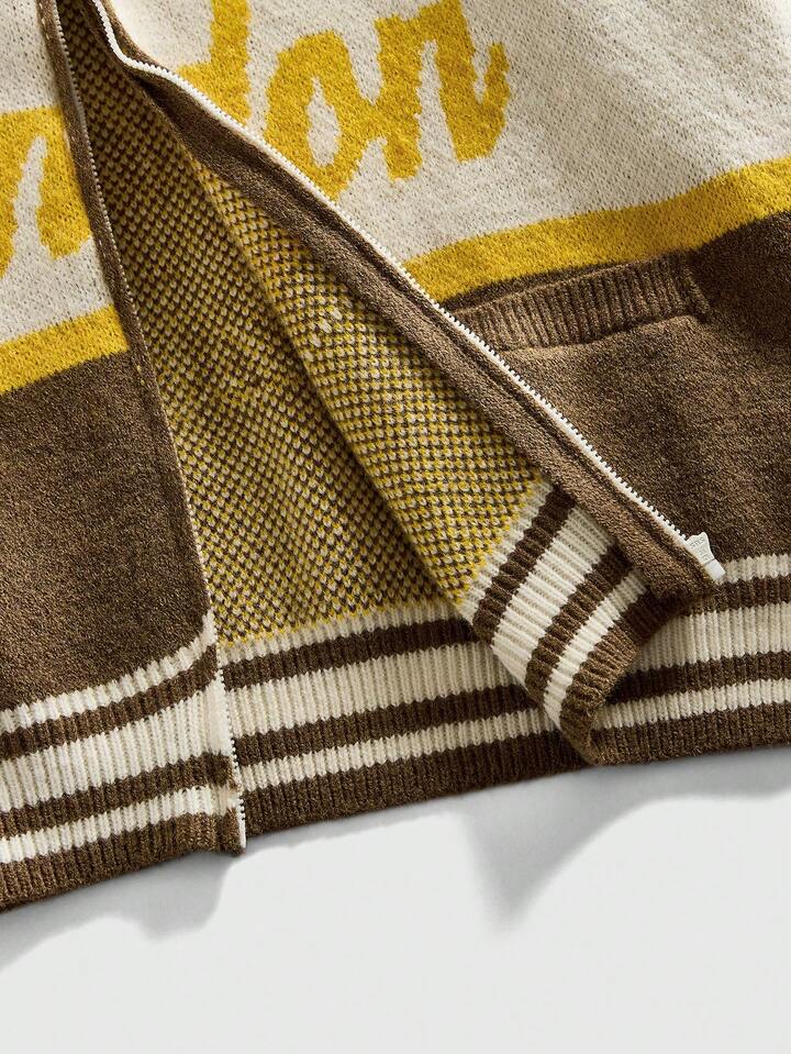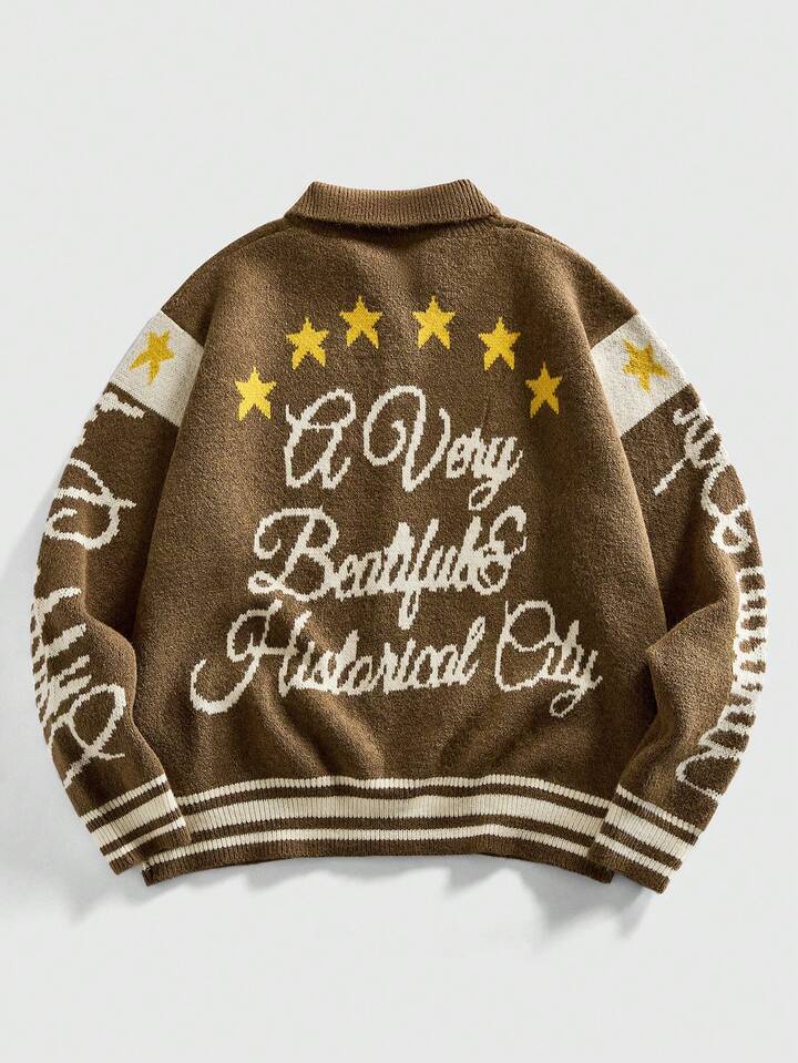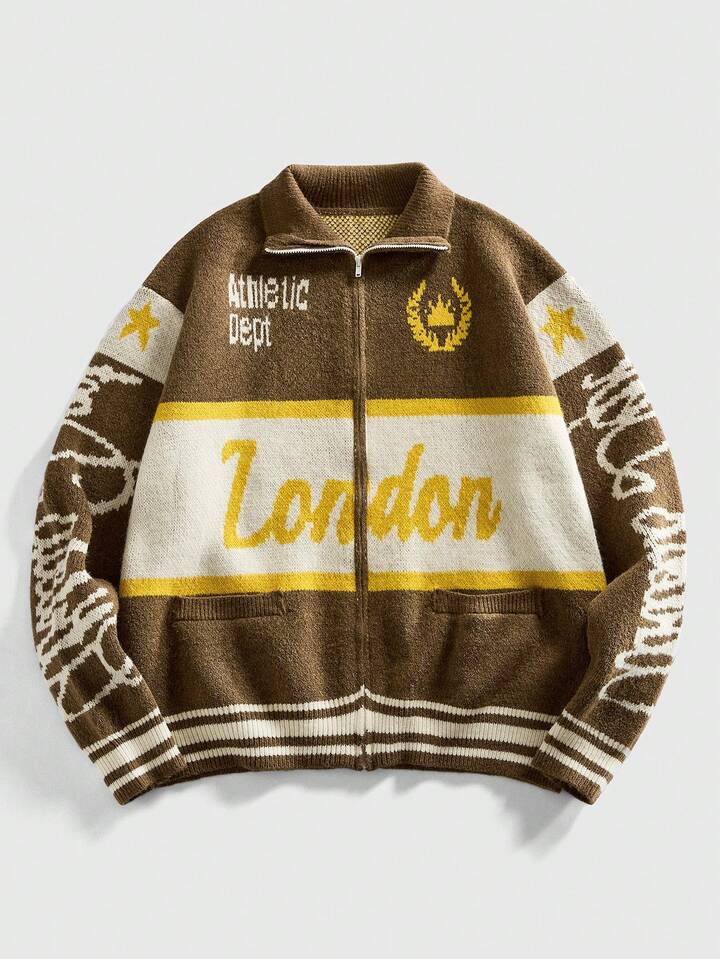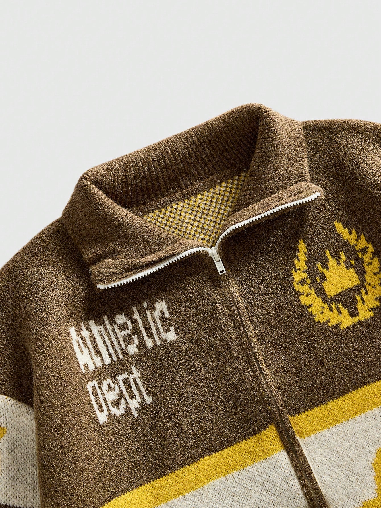 Chaqueta de punto con cremallera, cuello alto y estampado de letras para hombre