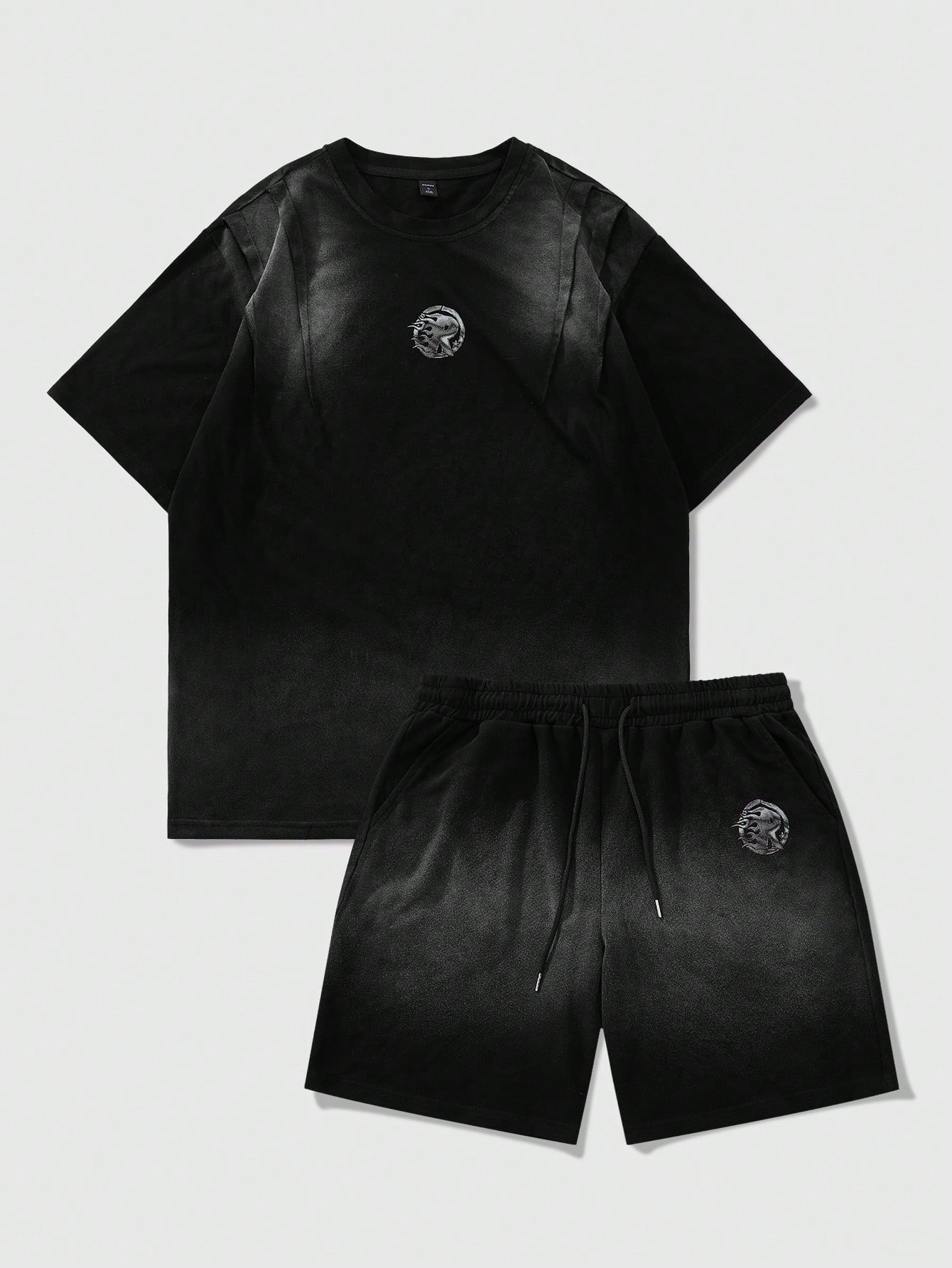 Street Life Conjunto de camiseta y pantalones cortos con estampado de cebra degradado, estilo callejero estadounidense para hombres