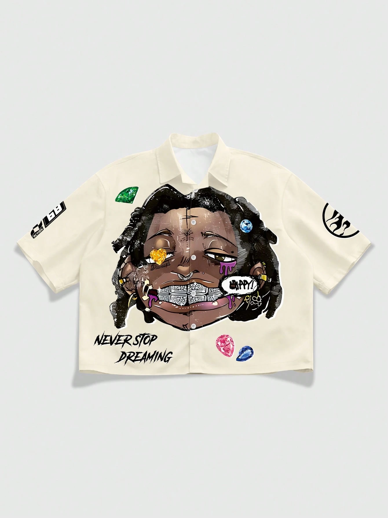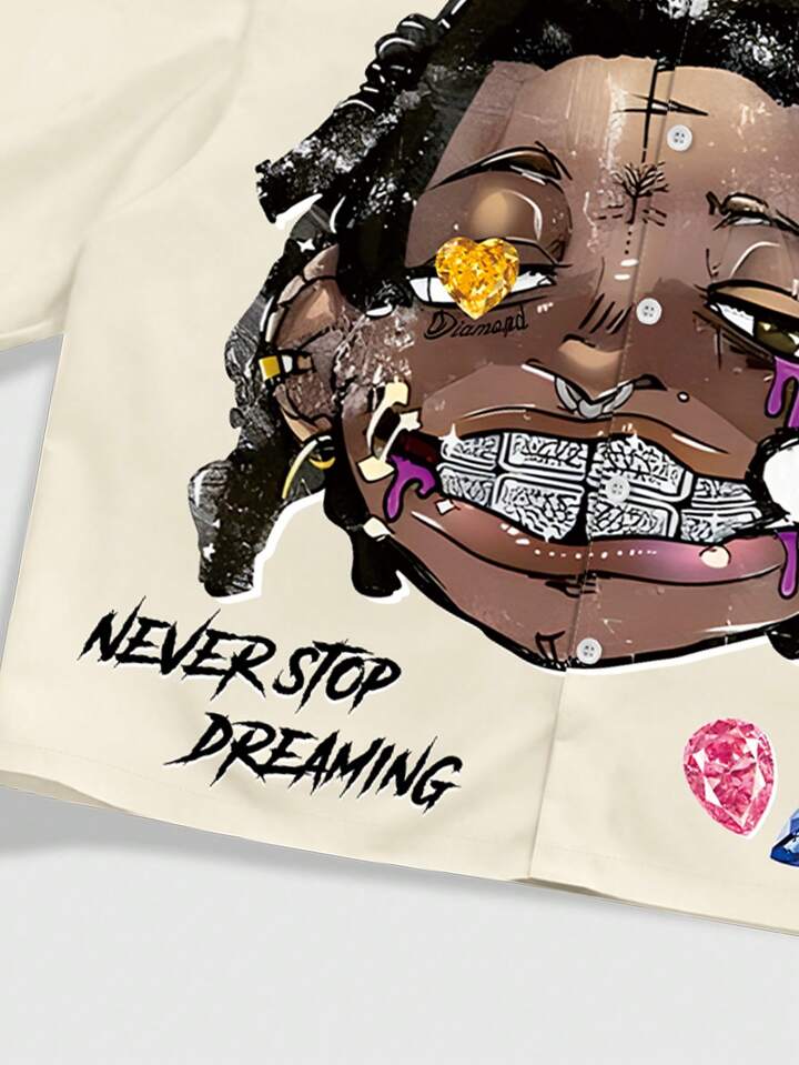 Street Life Camisa casual de manga corta con estampado para hombres