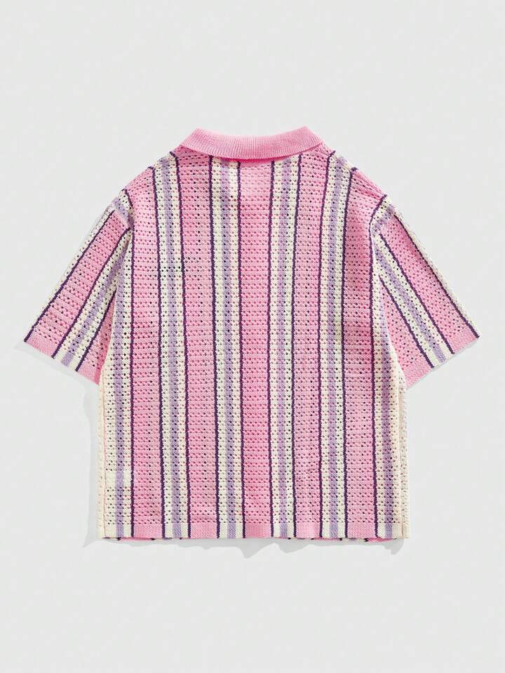 Street Life Suéter de punto casual de verano para hombres con rayas contrastantes
