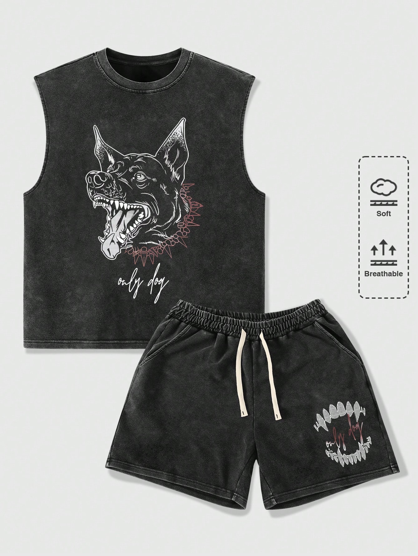 Street Life Conjunto de camiseta de tirantes de estilo casual suelto con gráfico de letras y perro, y pantalones cortos para hombre en verano