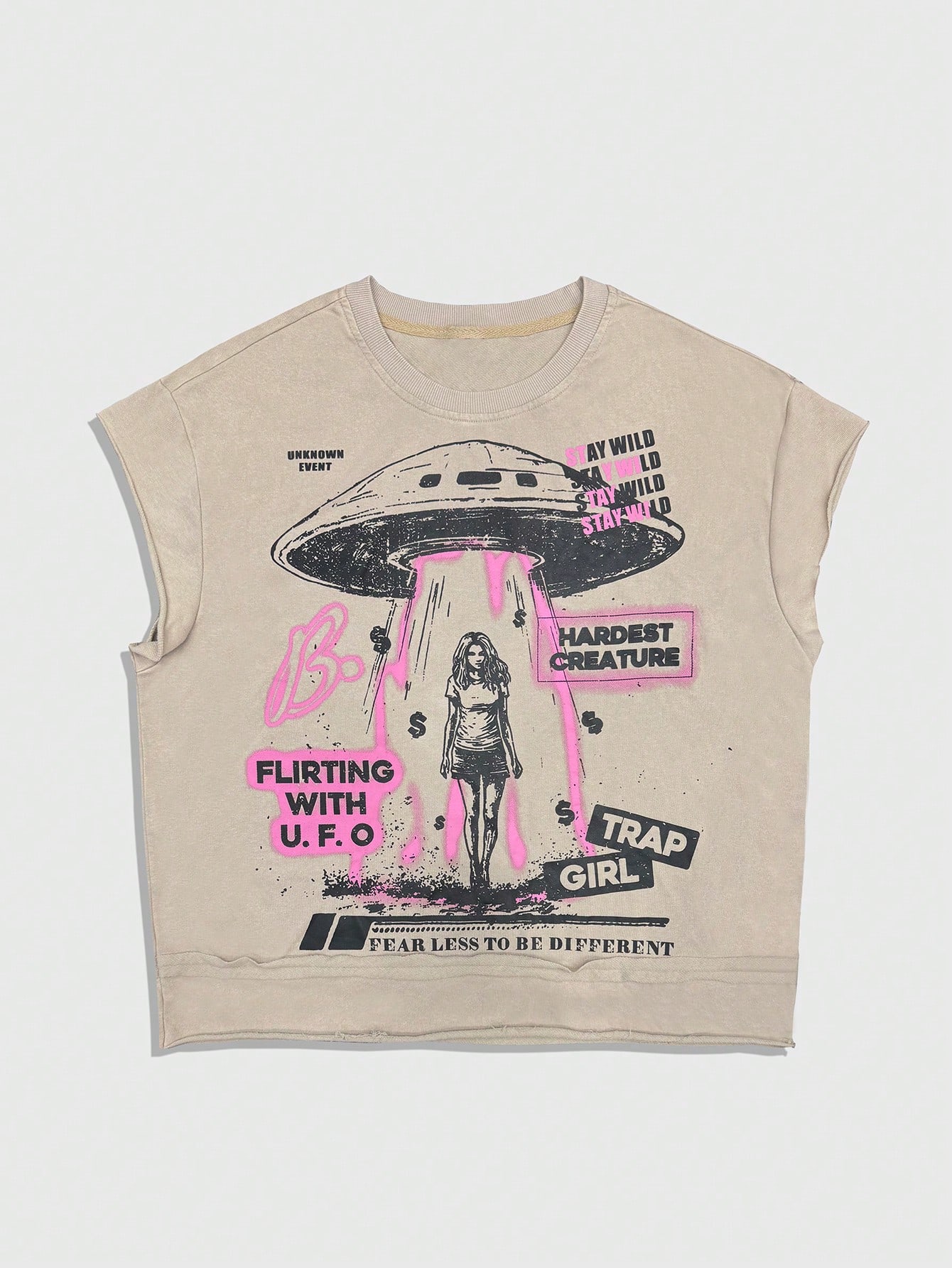 Street Life Chaleco informal de cuello redondo con estampado de letras y números para hombres en verano