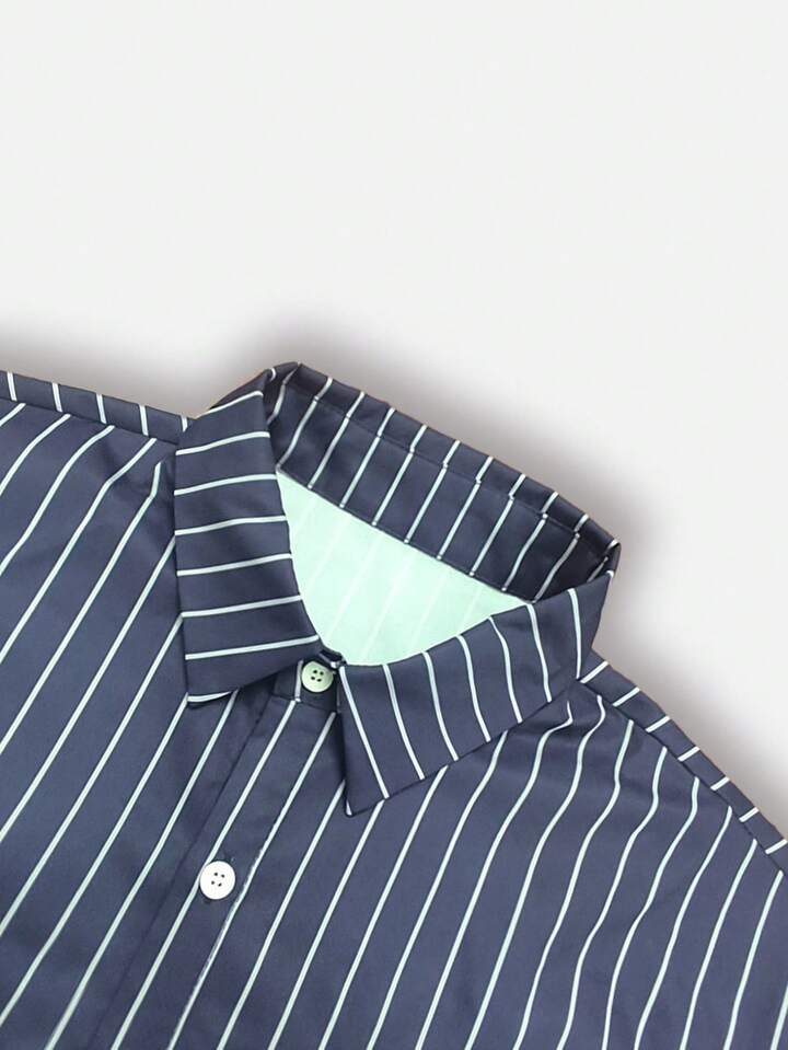 Camisa casual de manga corta con rayas y bolsillo, corte holgado para hombre