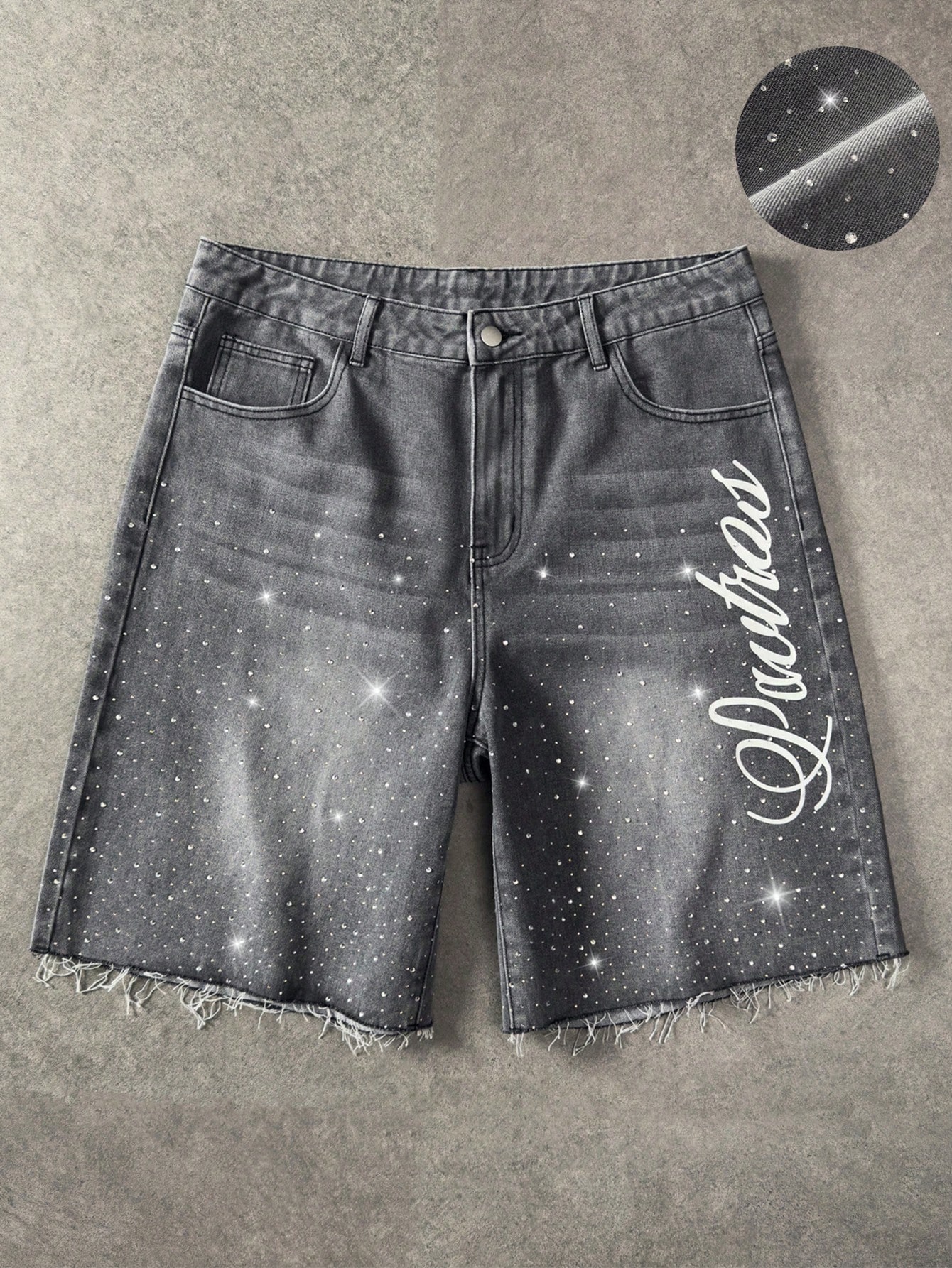 Pantalones cortos vaqueros de verano casuales para hombres decorados con diamante de imitación