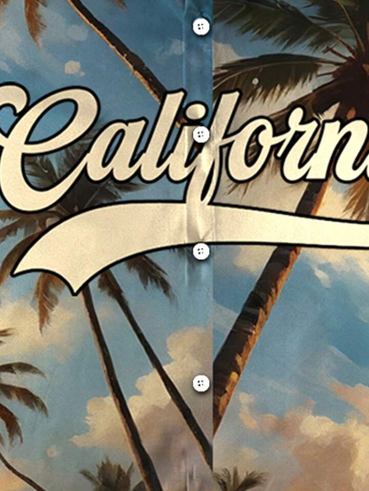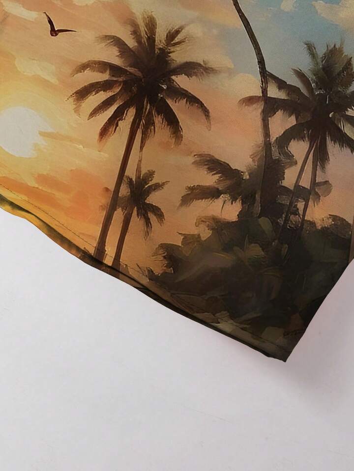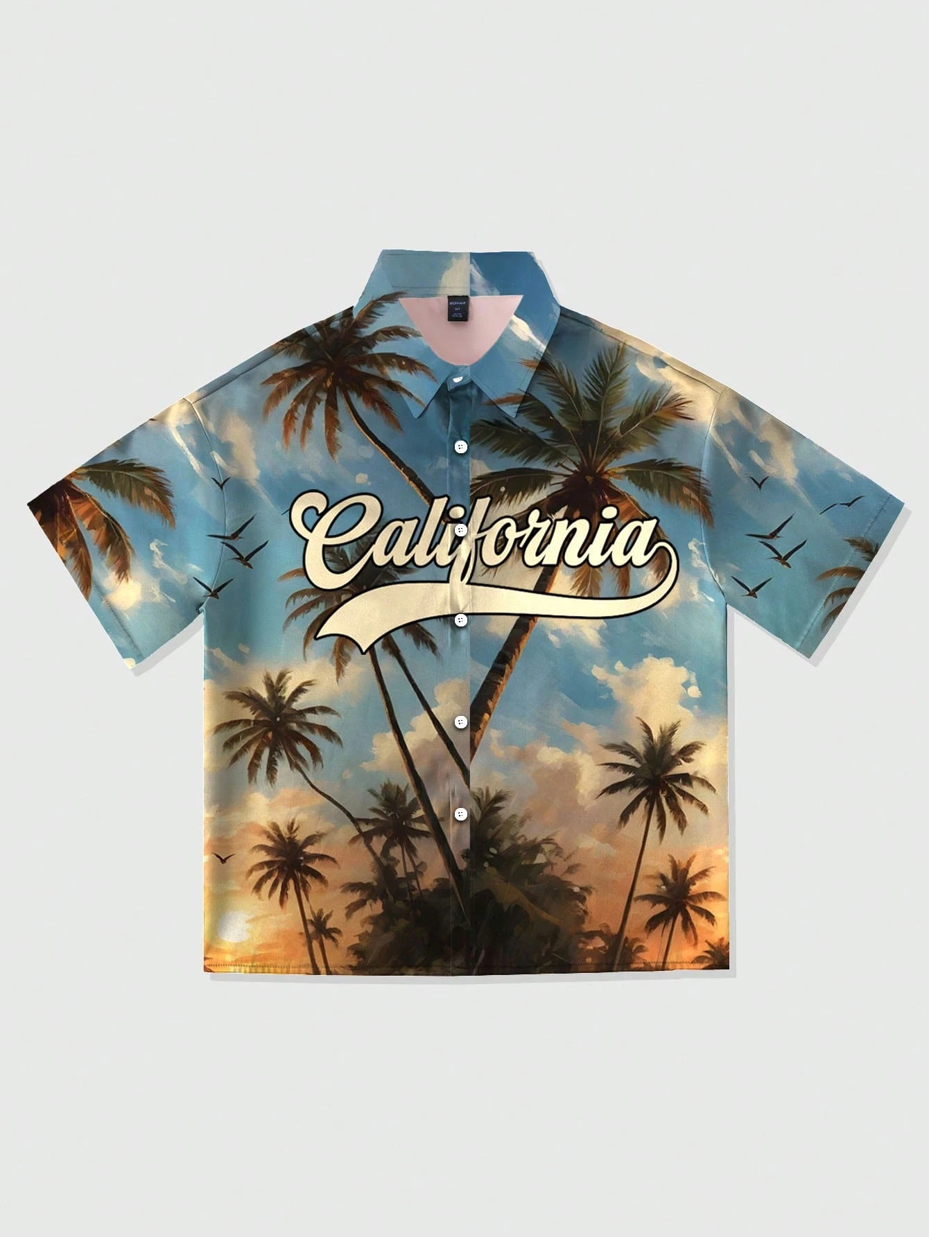 Camisa casual de verano para hombres con cuello abierto y manga corta con estampado de palmeras