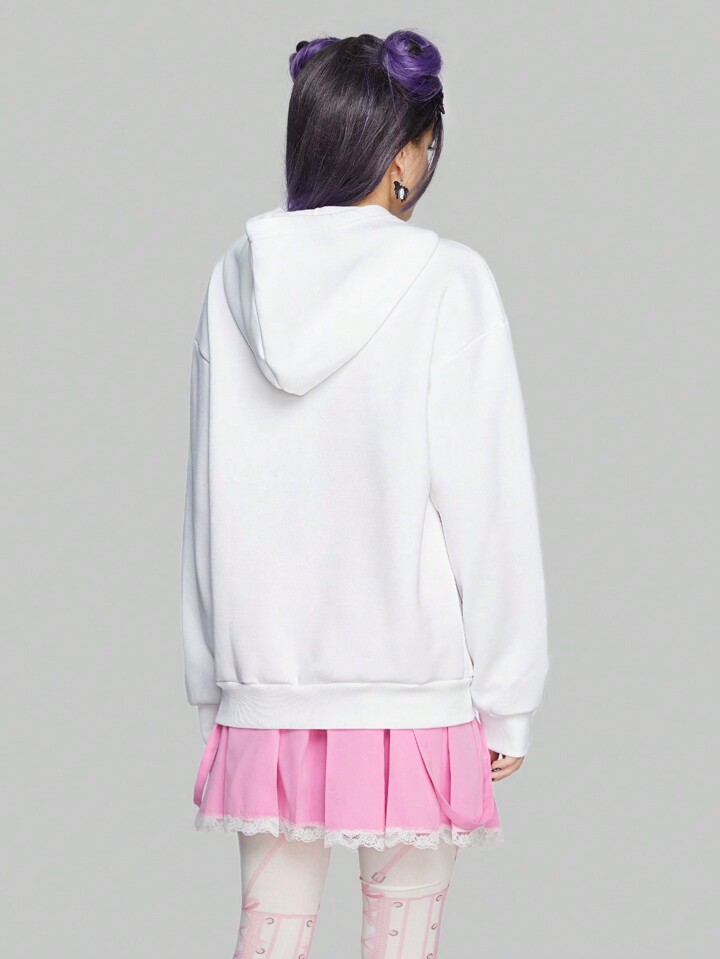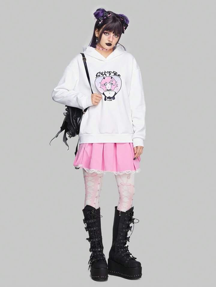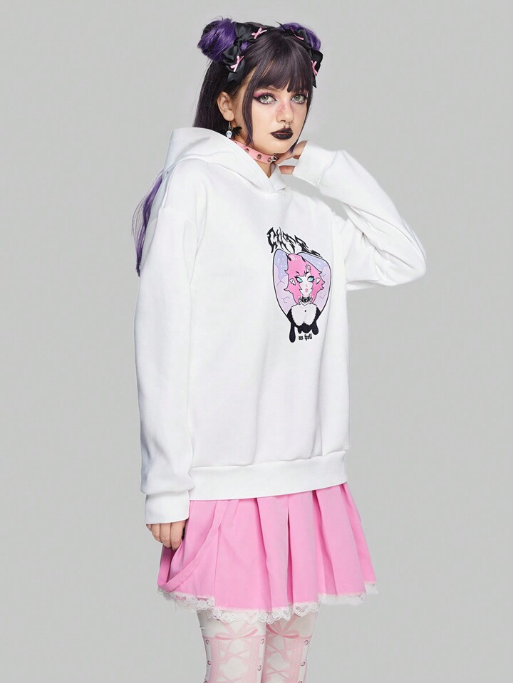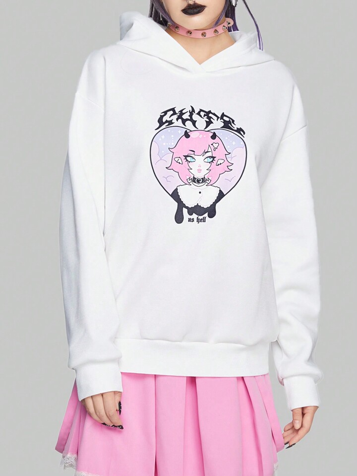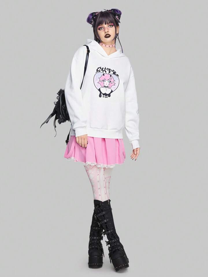 Meowhell Capucha con estampado de dibujos animados de hombros caídos