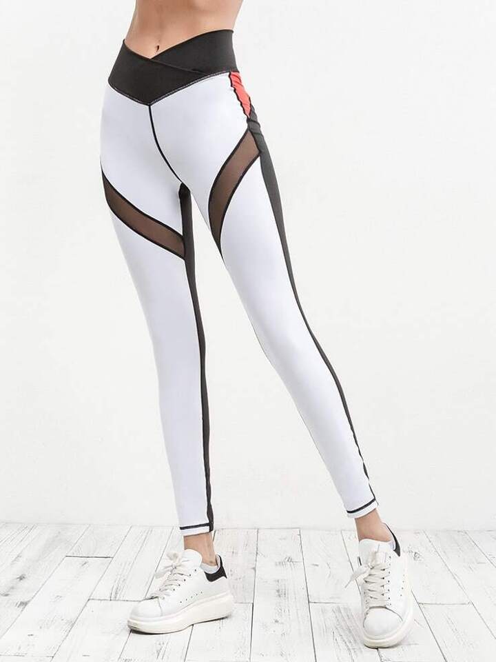 Leggings en malla bicolor