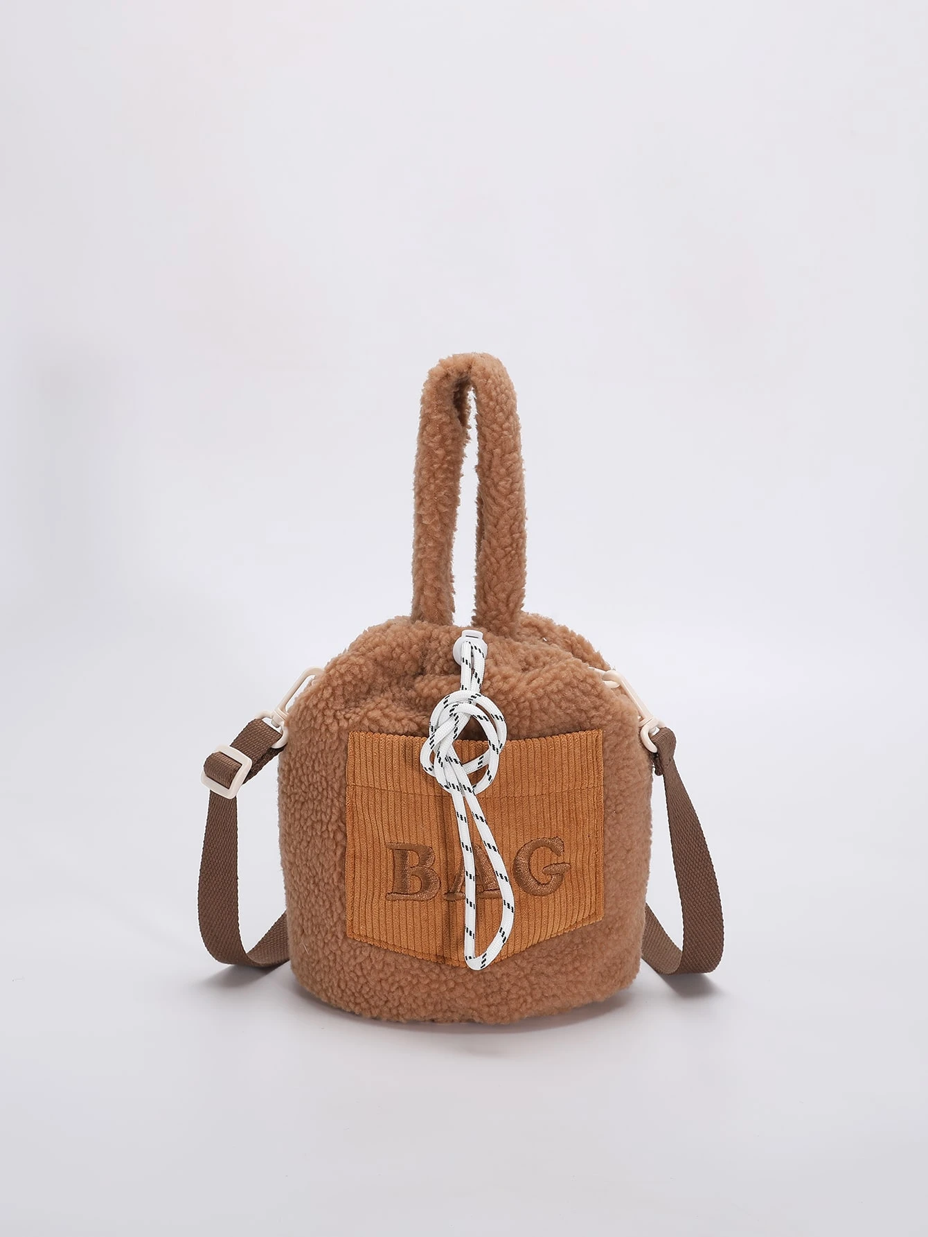 Bolso cubo mini con bordado de letra con cordón de peluche