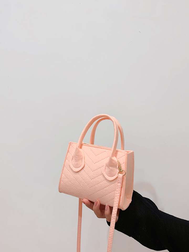 Bolsa cuadrada mini con patrón de cheurón doble asa para diariamente