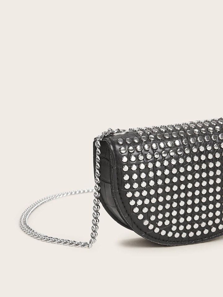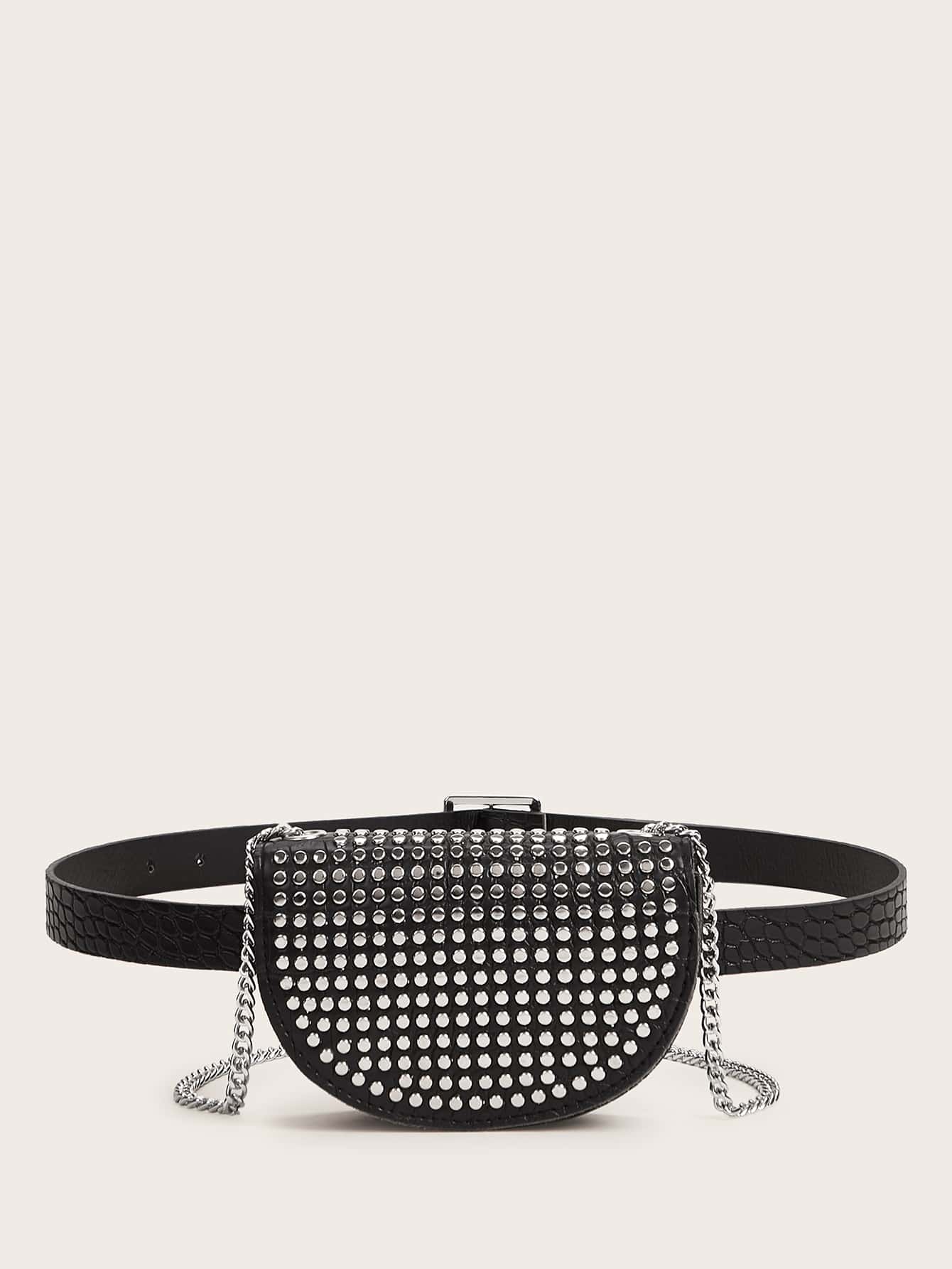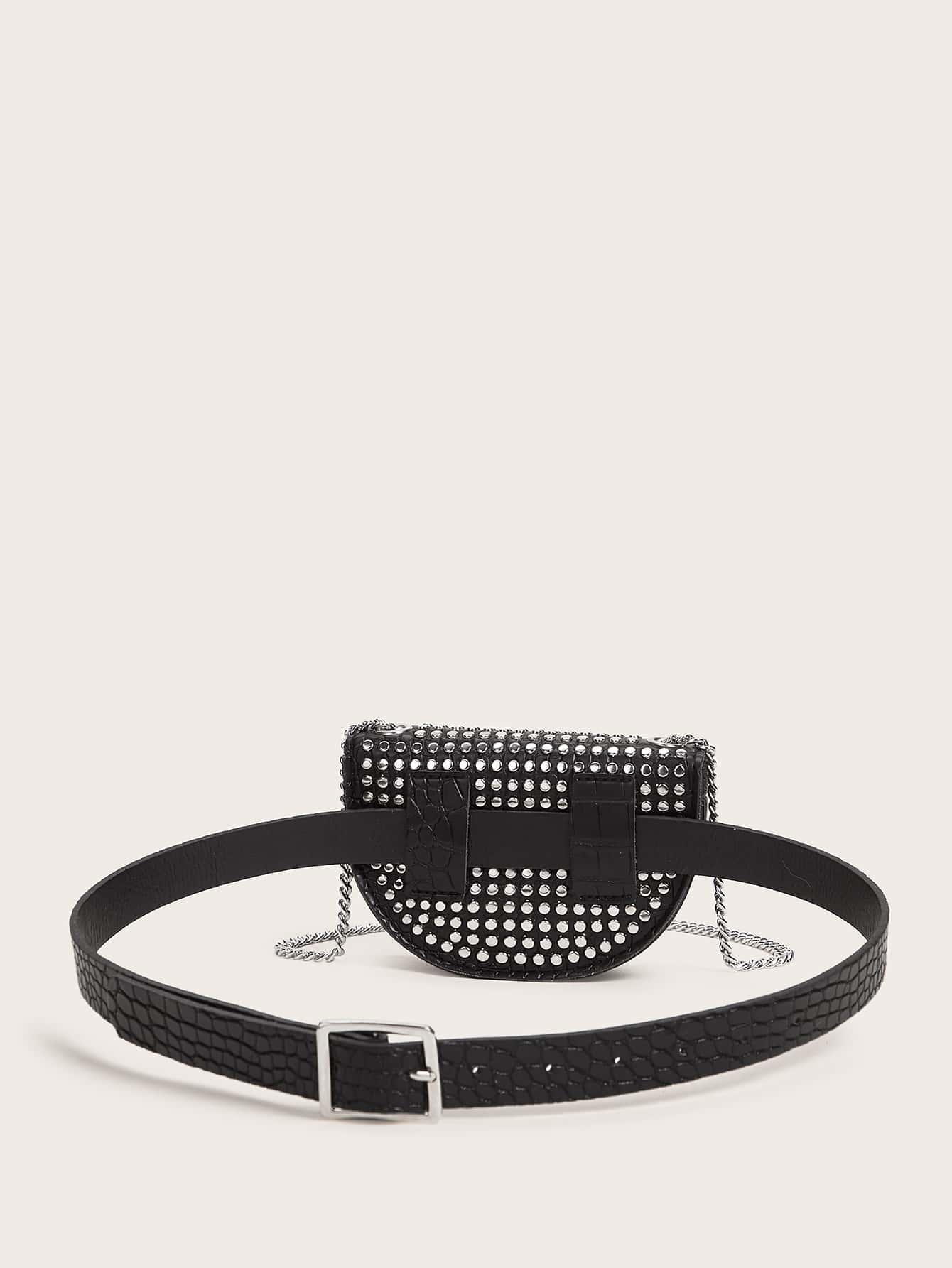 Riñonera mini con cadena en relieve de cocodrilo y decoración con tachuelas