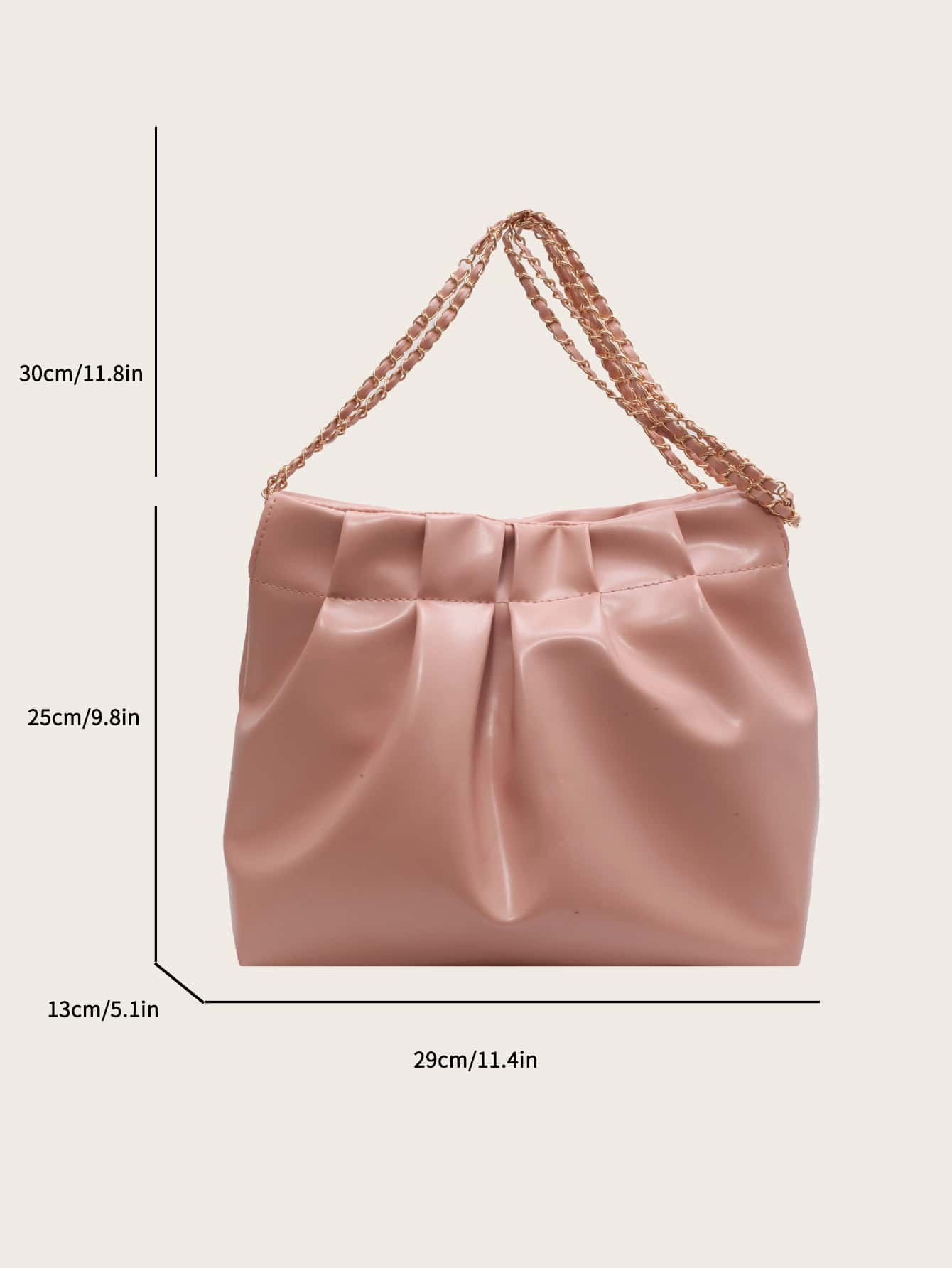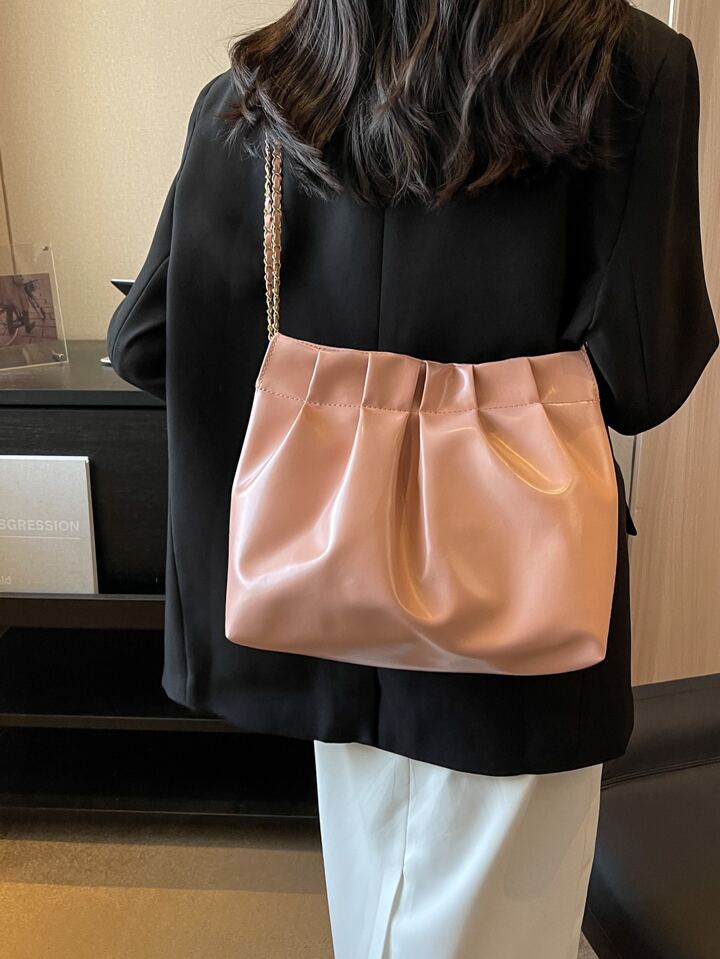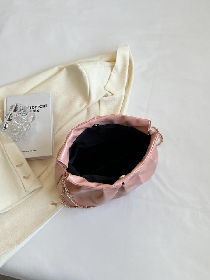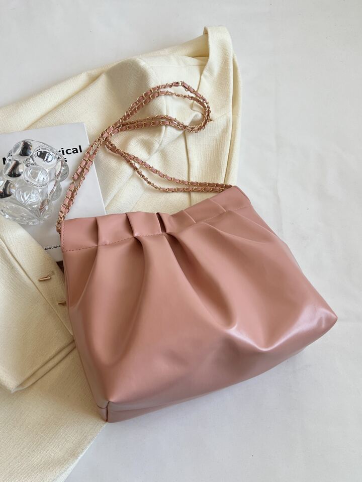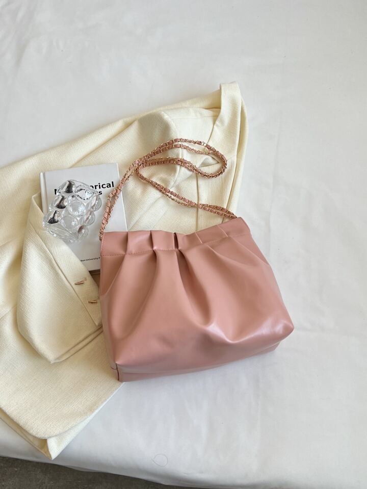 Bolso con fruncido minimalista medio con cadena con tira rosado