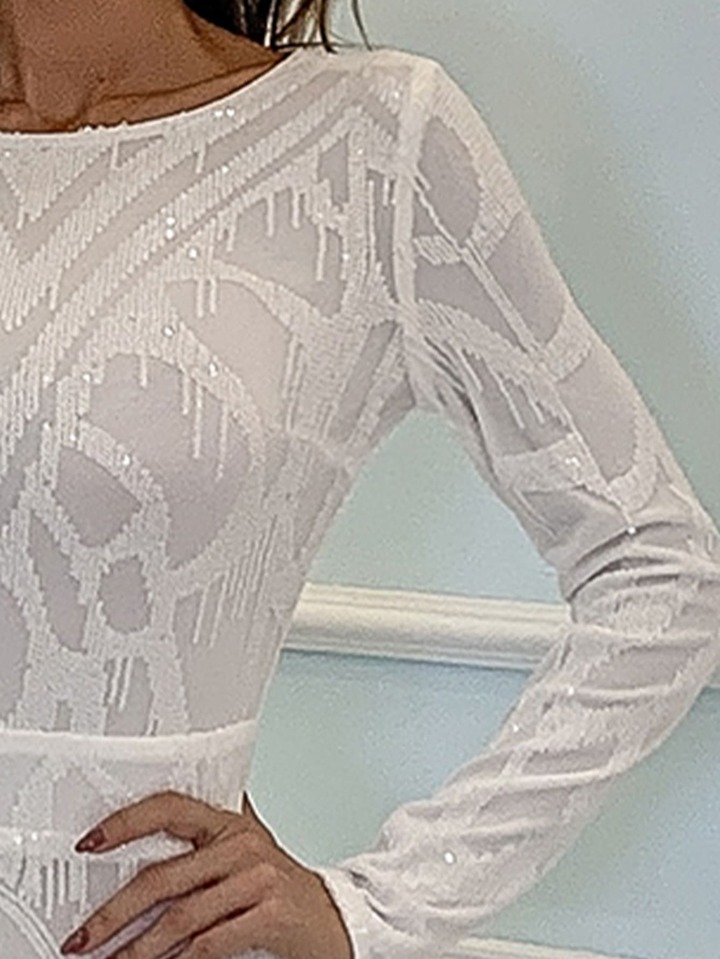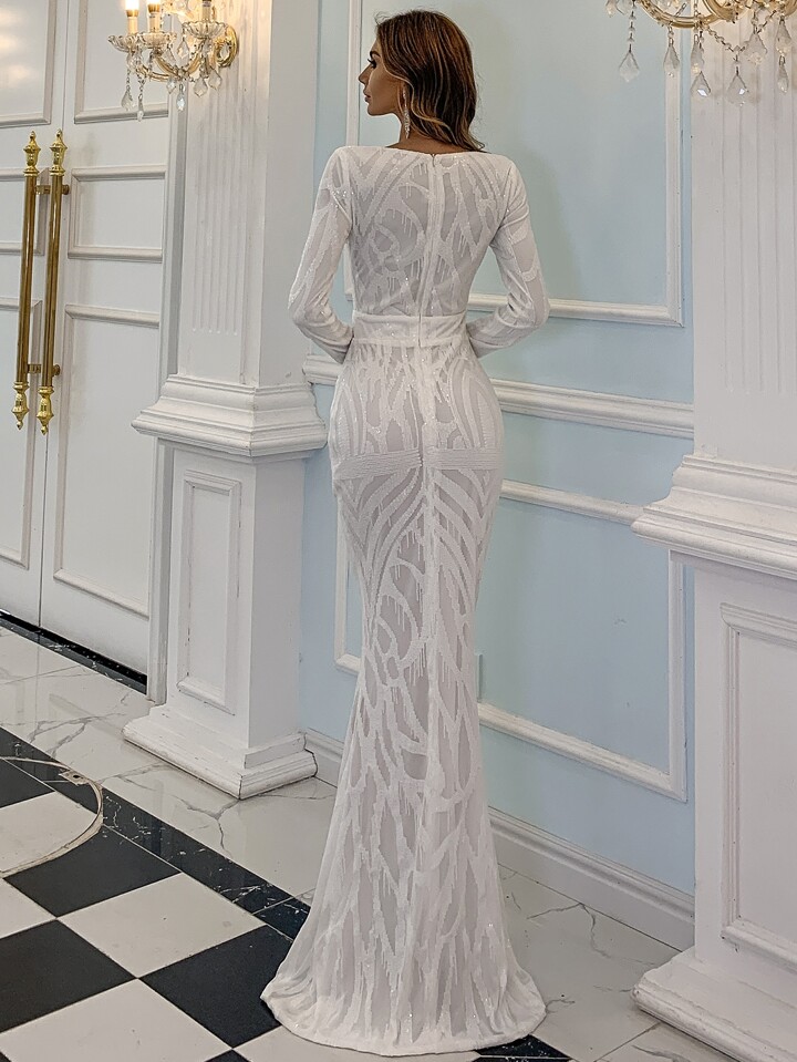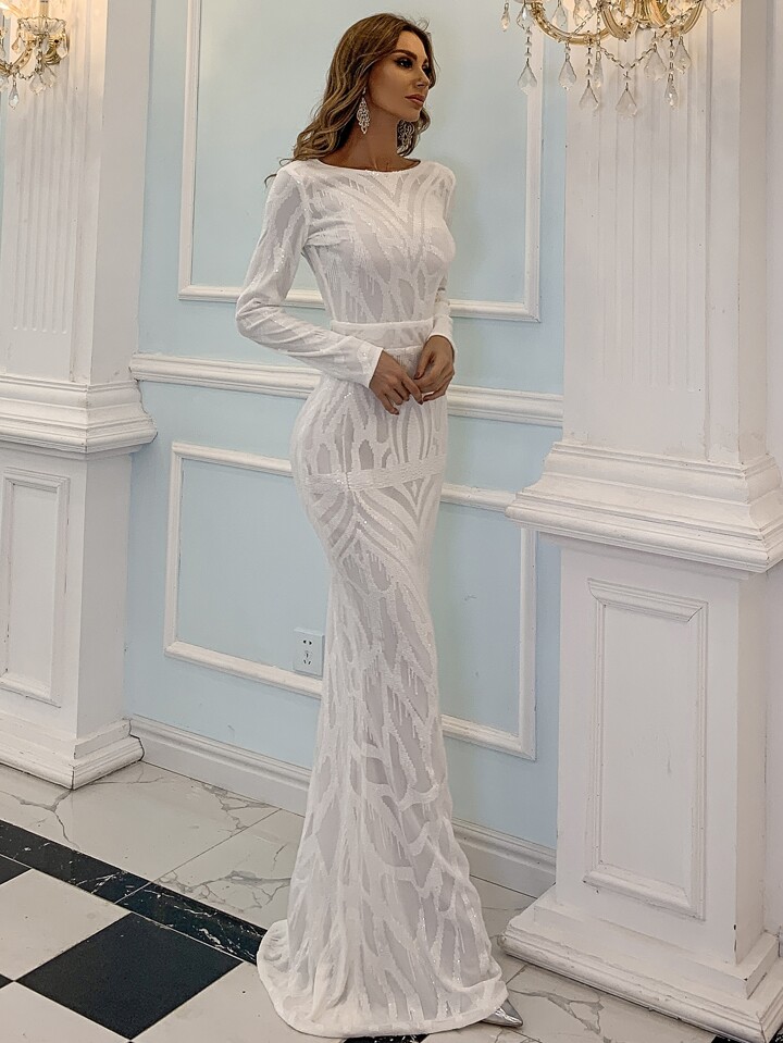 Missord Vestido de fiesta sirena con lentejuela de cuello barco
