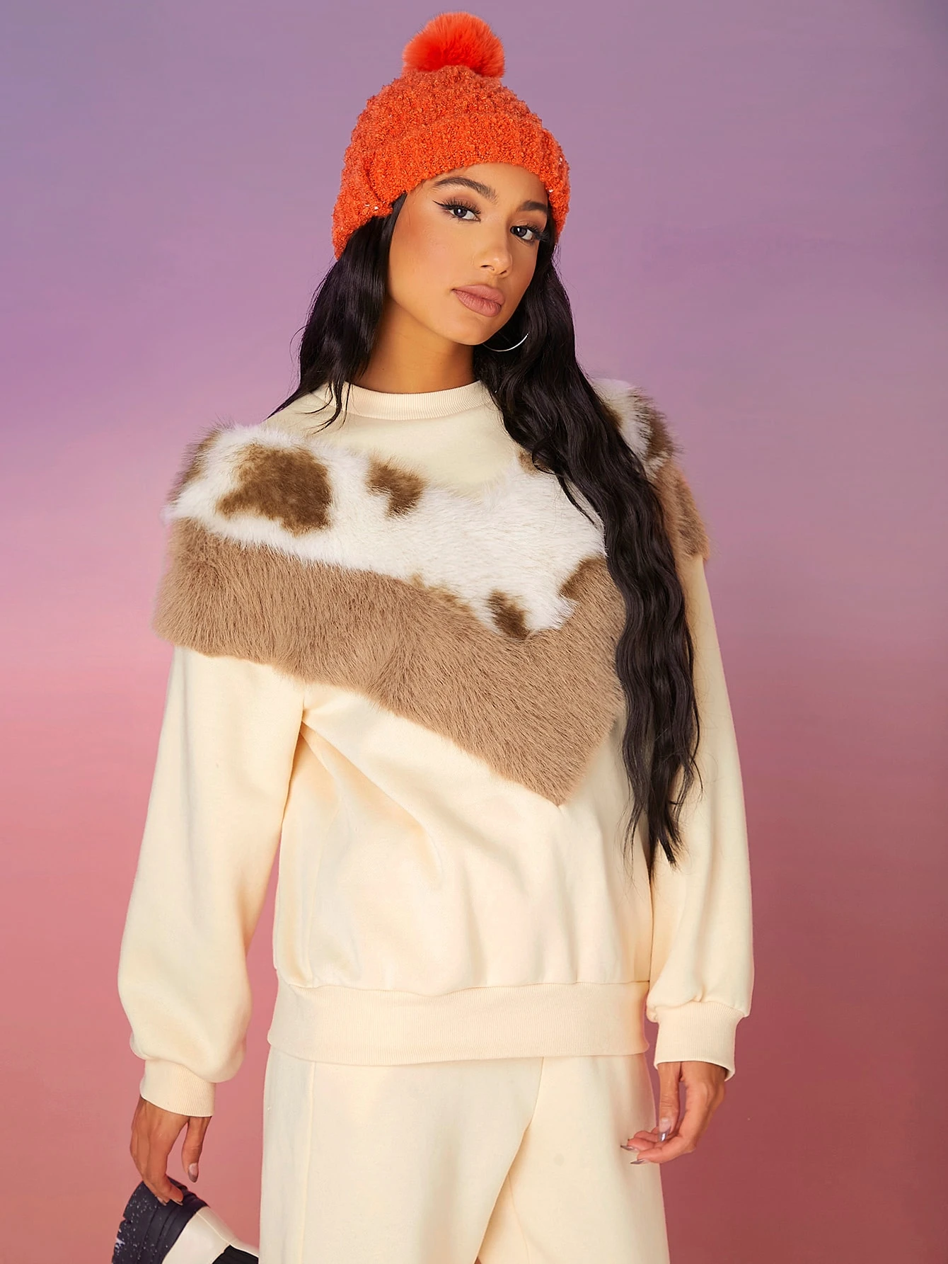 Pullover de cuello alto de peluche panel de color combinado