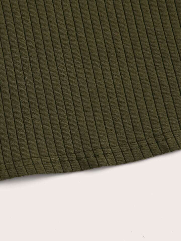 Top tejido de canalé ribete en forma de lechuga de cuello alto