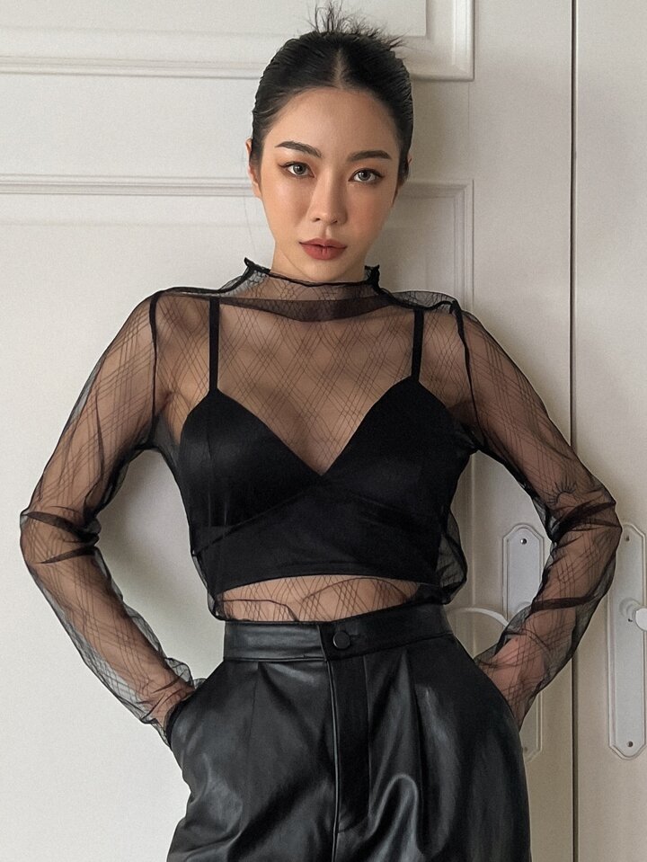 Camiseta De Malla De Cuello Alto Sin Sujetador
