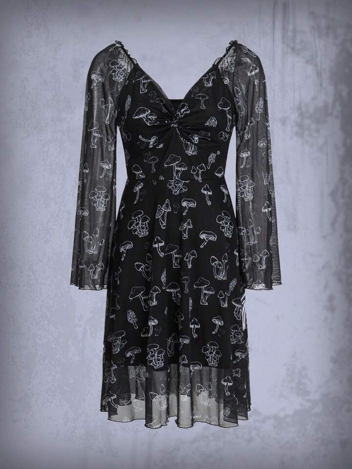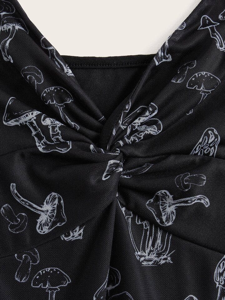 Vestido con estampado de seta girante delantero de malla