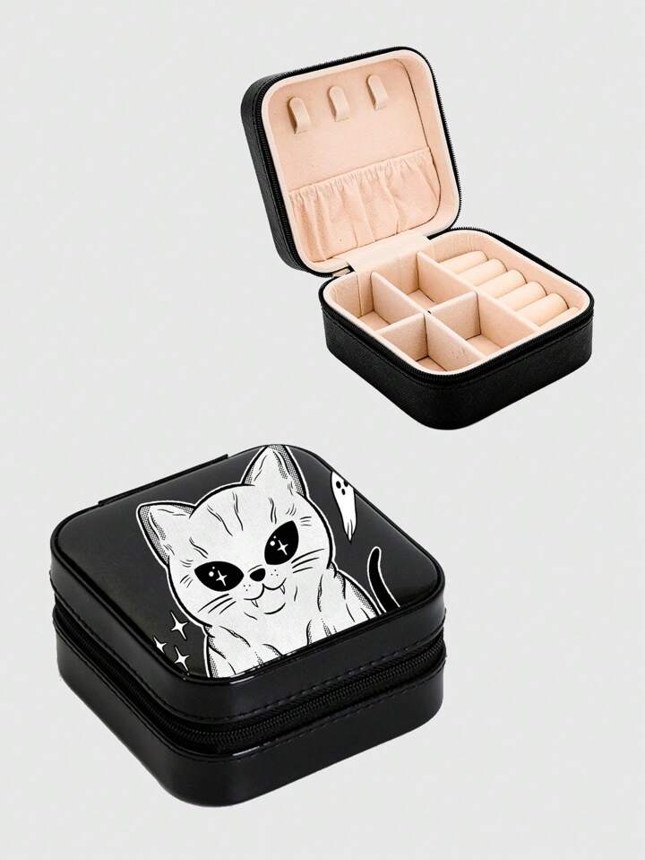 Mystic heart 1 pieza con patrón de gato de dibujos animados Joyero , dulce Organizador de joyas Caja de almacenamiento