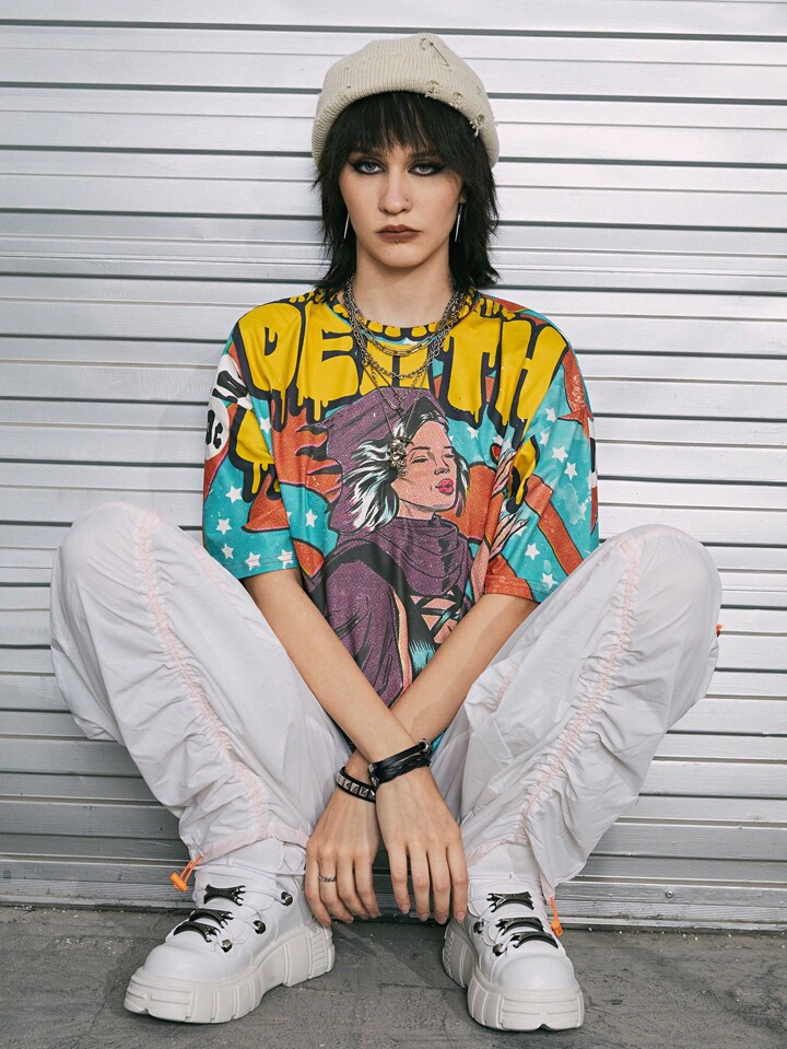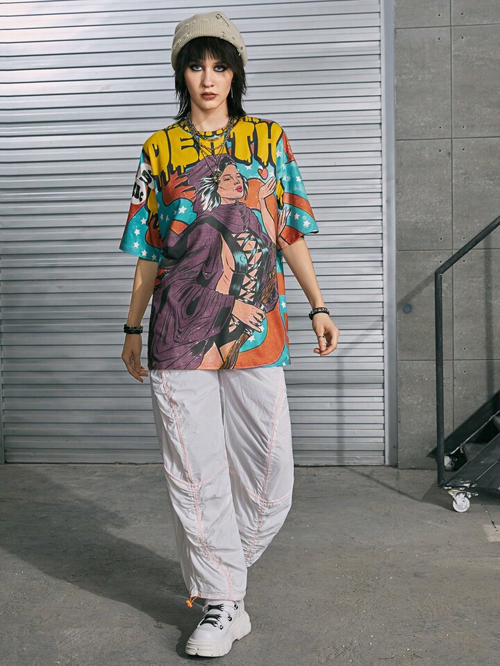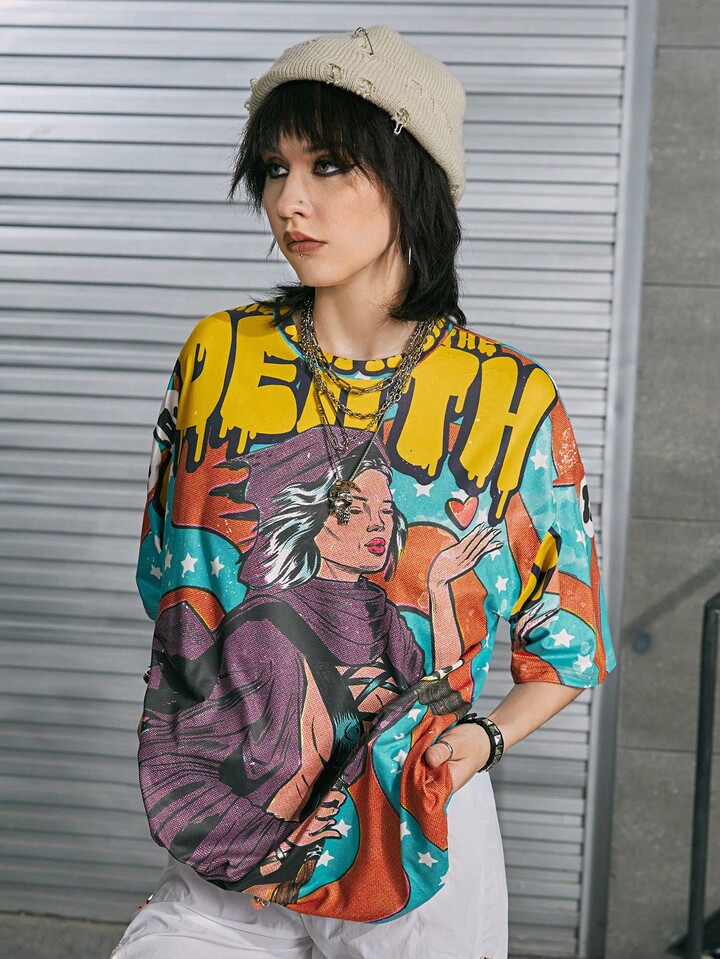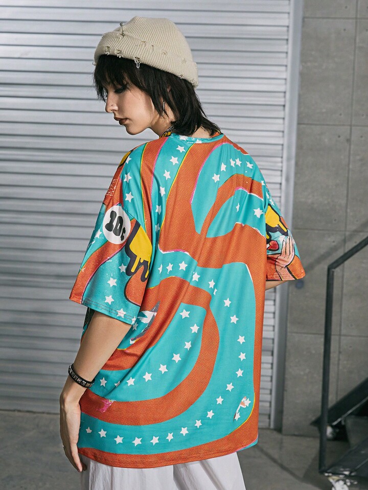 Nacheramosart Camiseta de hombros caídos con estampado de figura