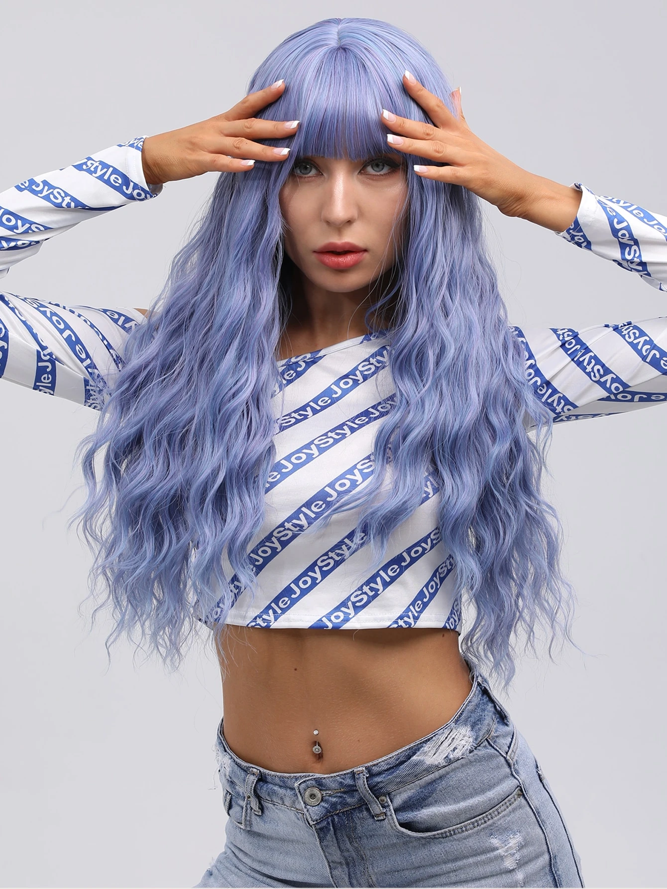 Peluca rizada larga natural con tupe