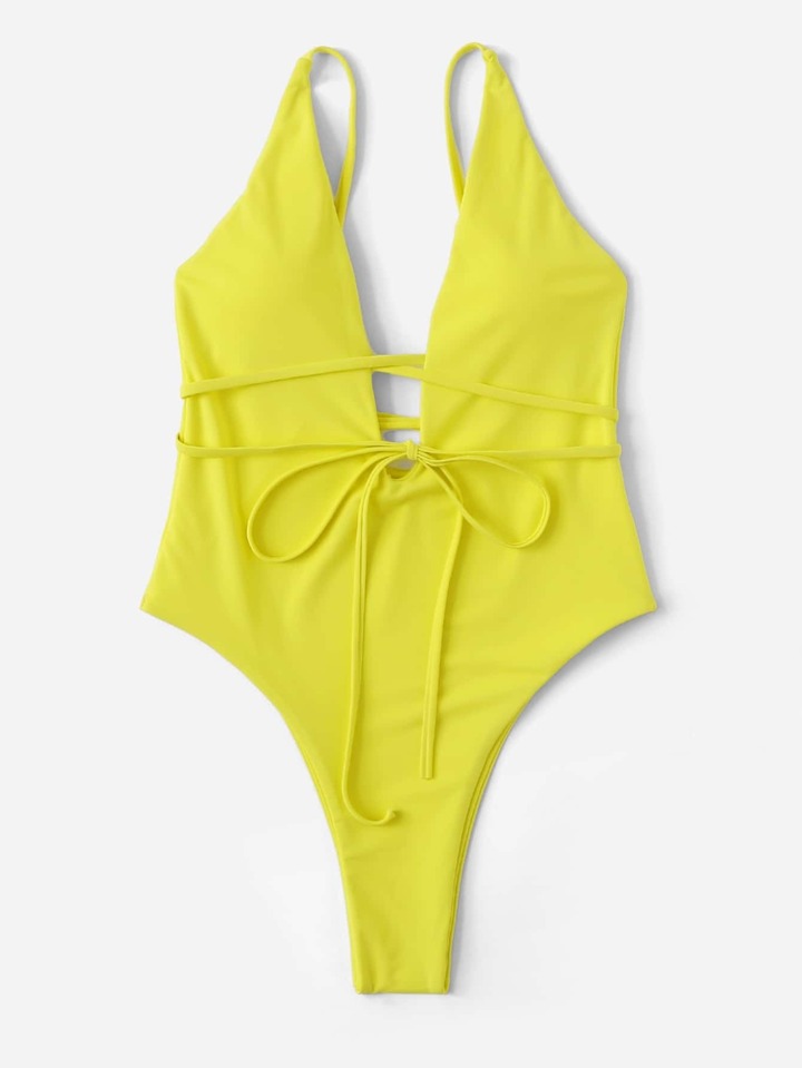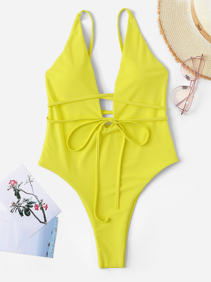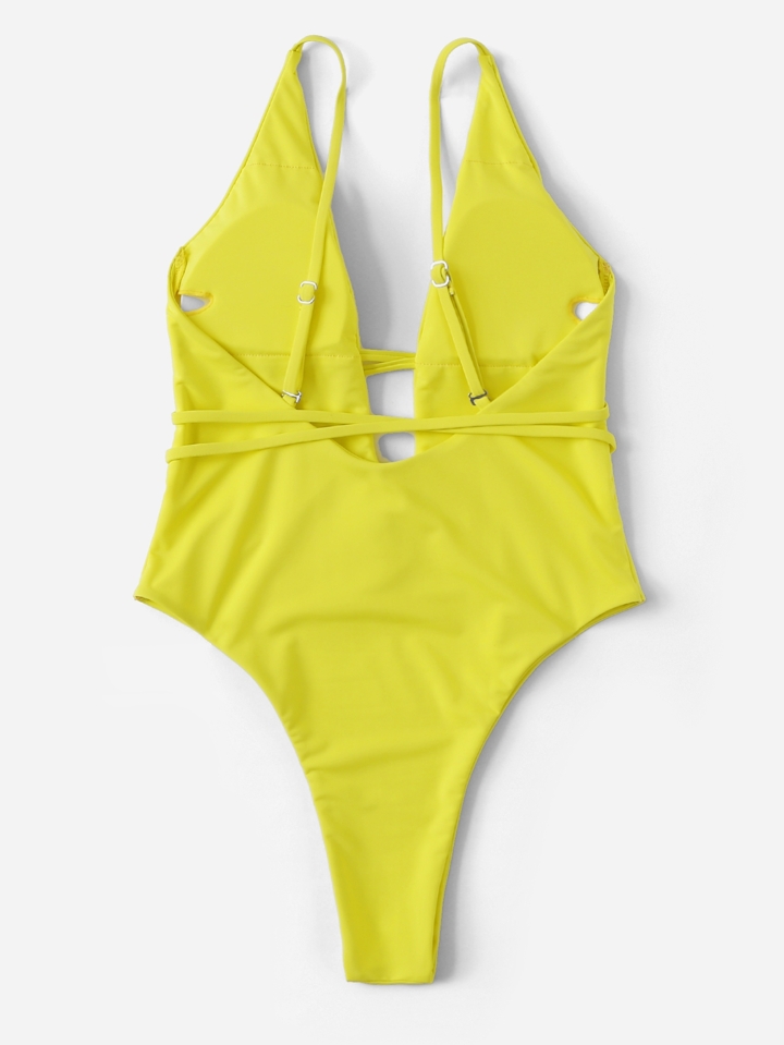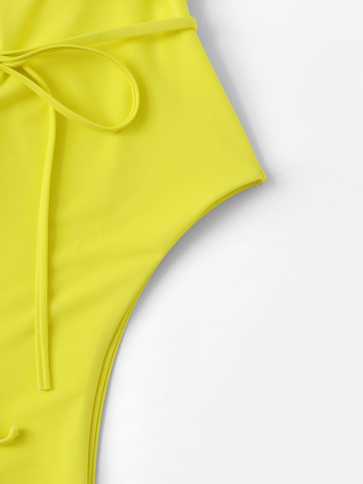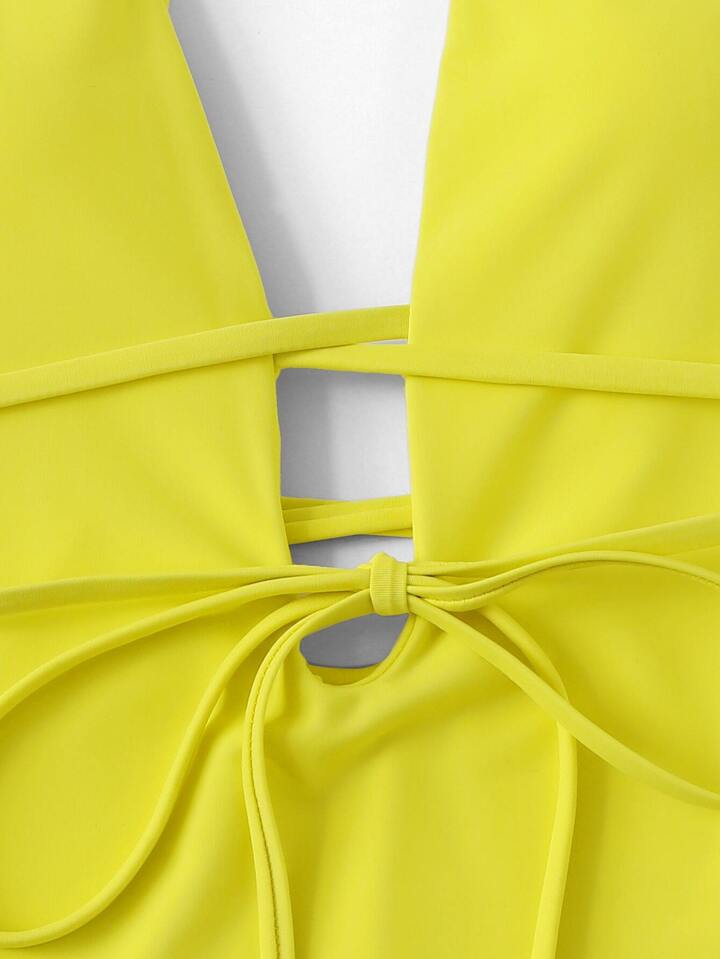 Bañador una pieza de cuello profundo de espalda baja amarillo neón
