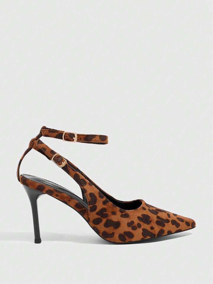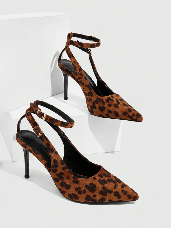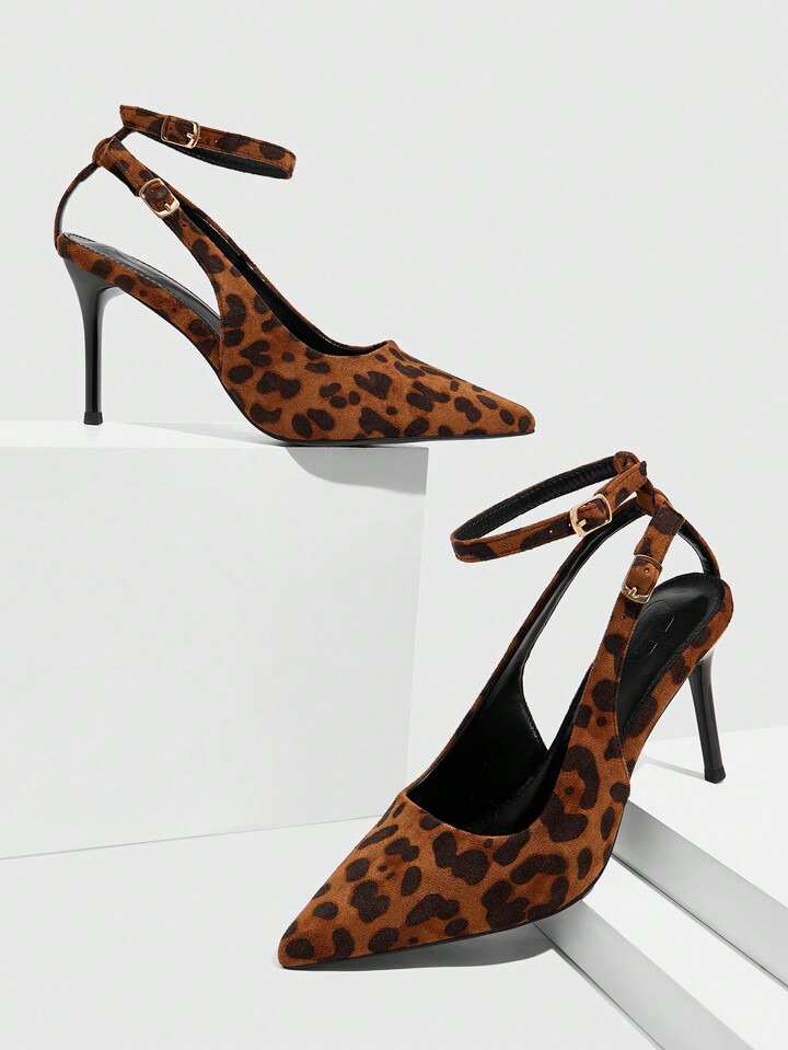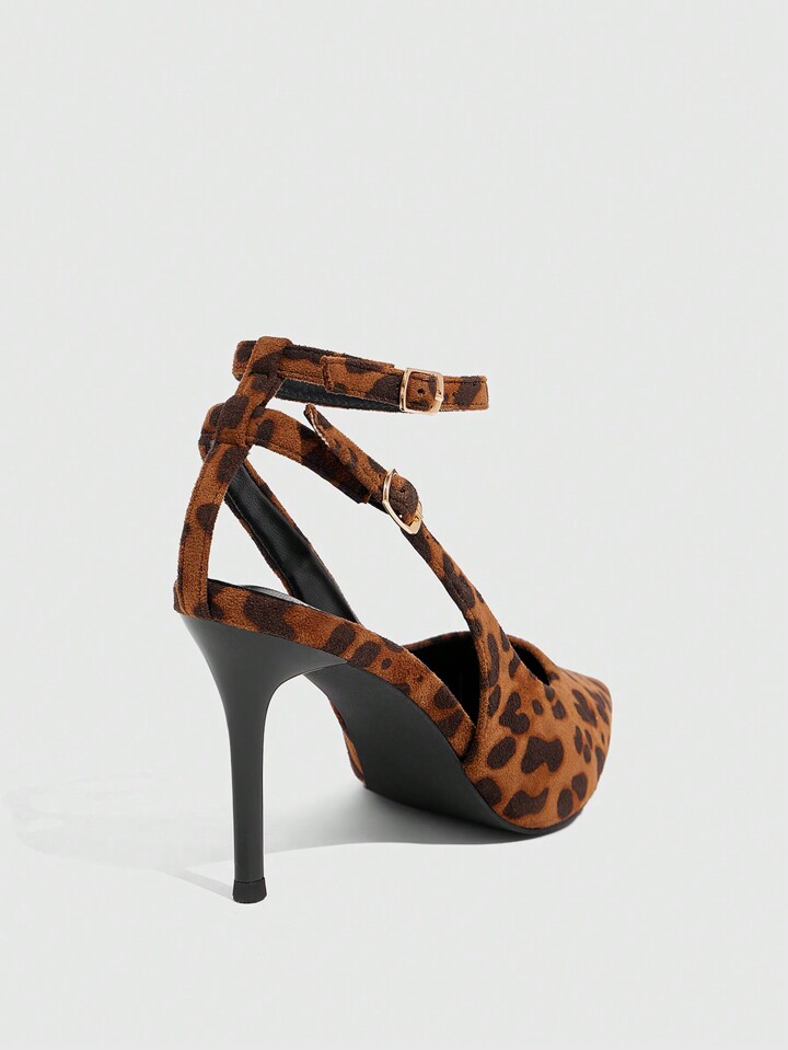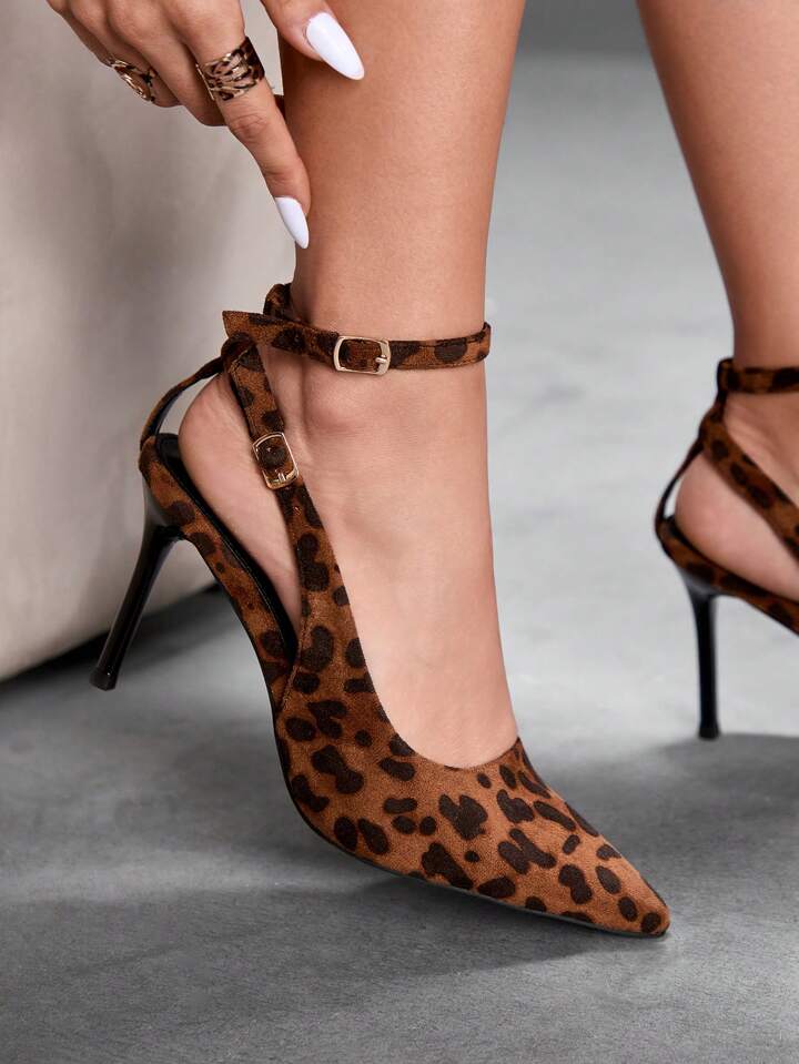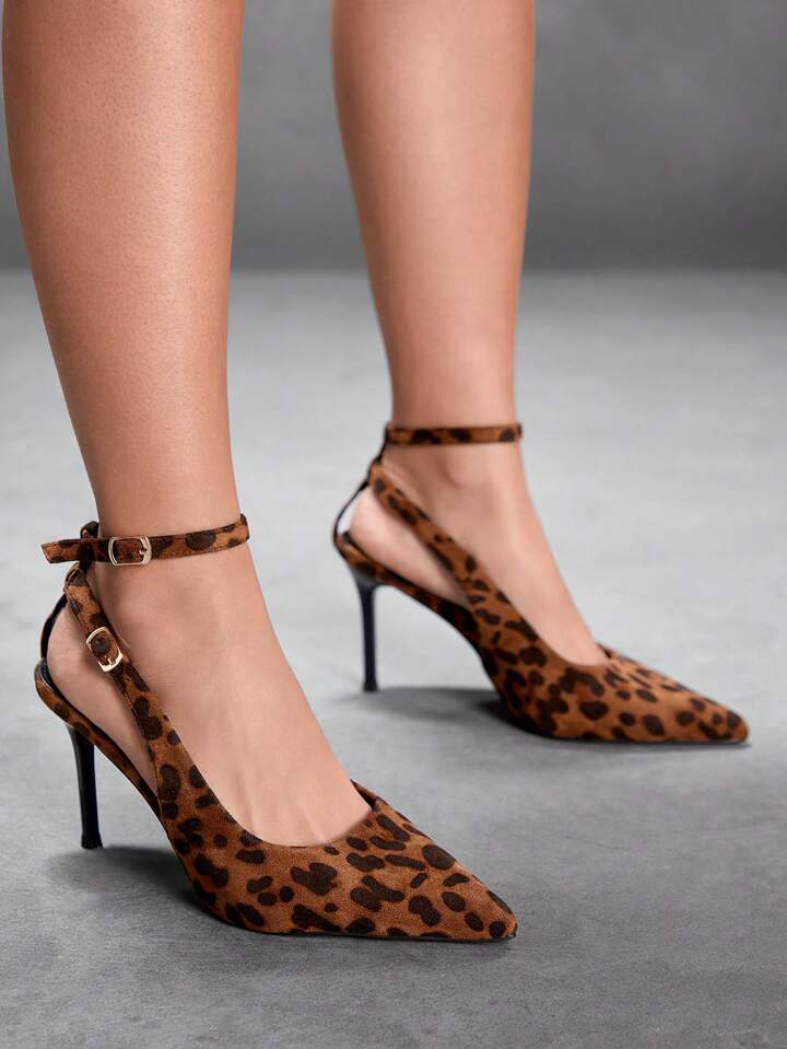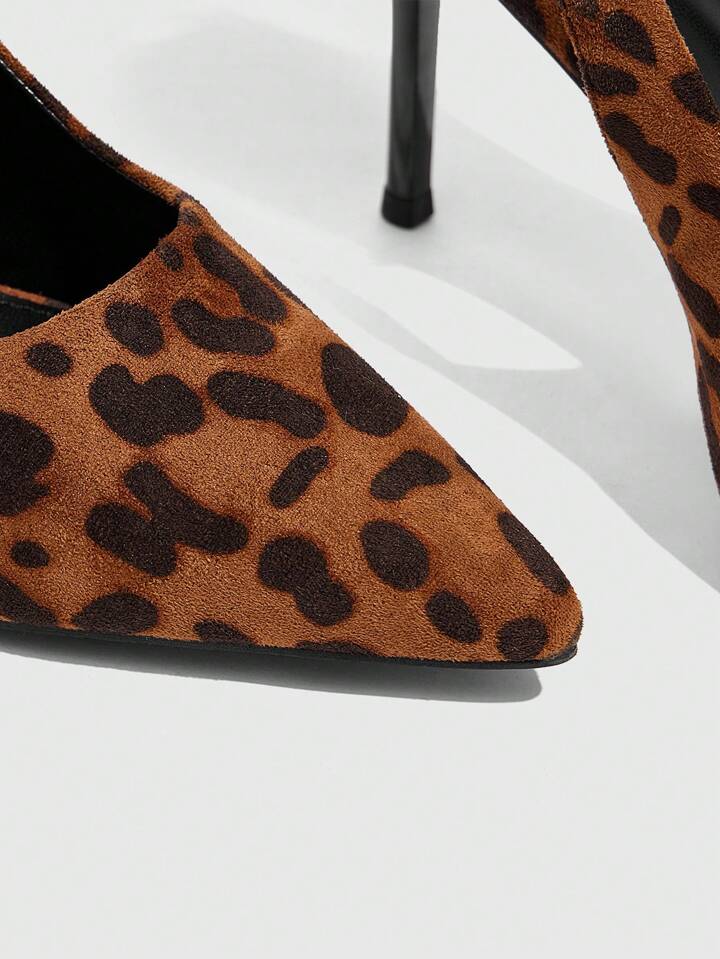 Novedad Sandalias de tacón súper alto con punta puntiaguda y estampado de leopardo para mujer, estilo europeo y americano, para el otoño y el Día de San Valentín