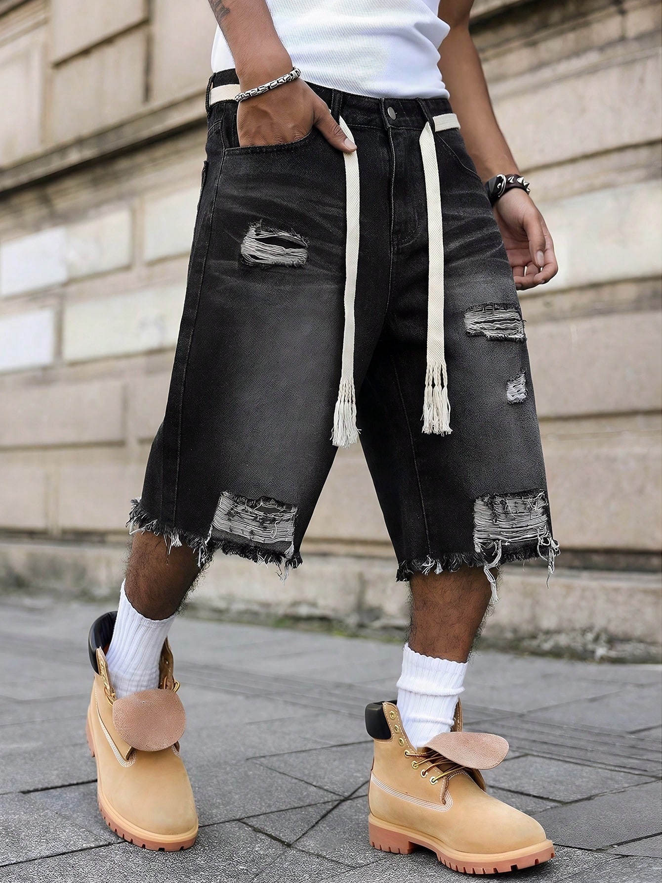 Nuevos pantalones cortos vaqueros casuales sueltos y desgastados de verano para hombres