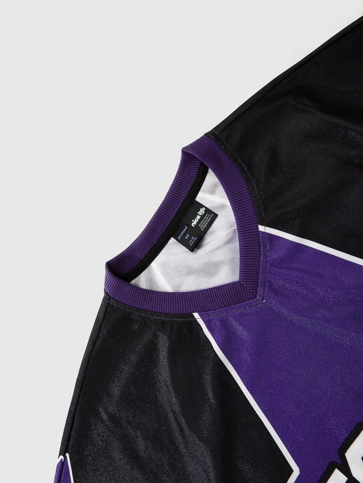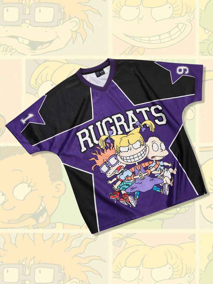 Nick 90's X ROMWE Camiseta de hombre con estampado de pentagrama de tela brillante, adecuada para el uso casual en primavera y verano