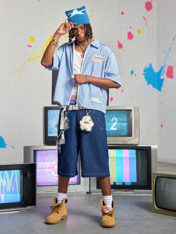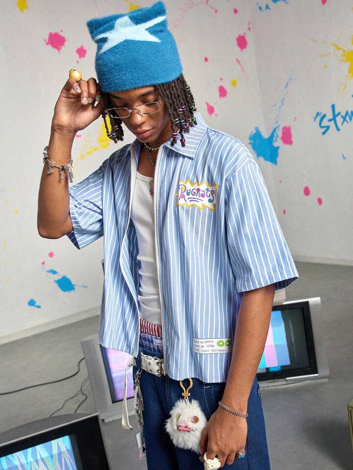 Nick 90's X ROMWE Camisa de corte holgado a rayas de la colaboración de Nick de los 90