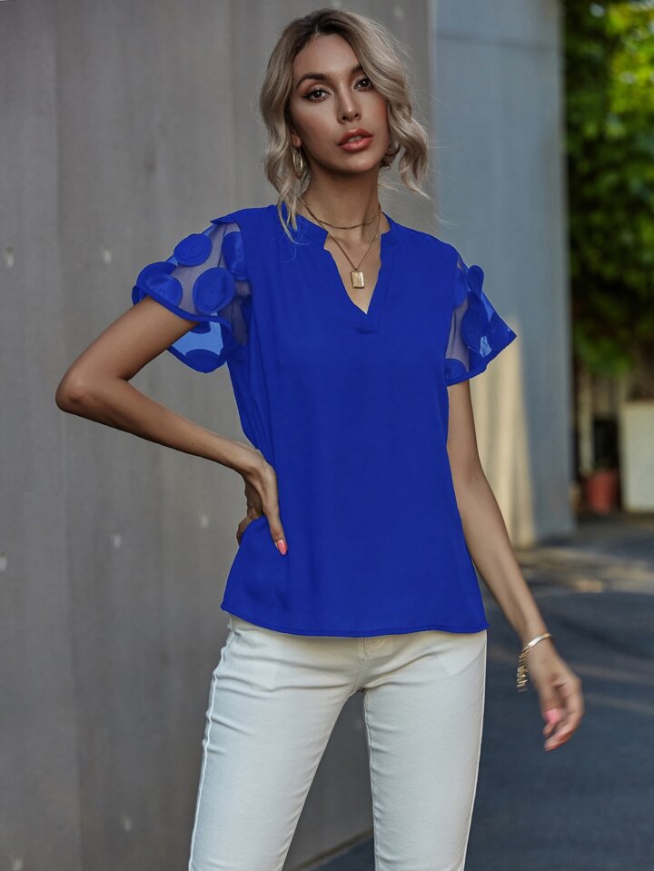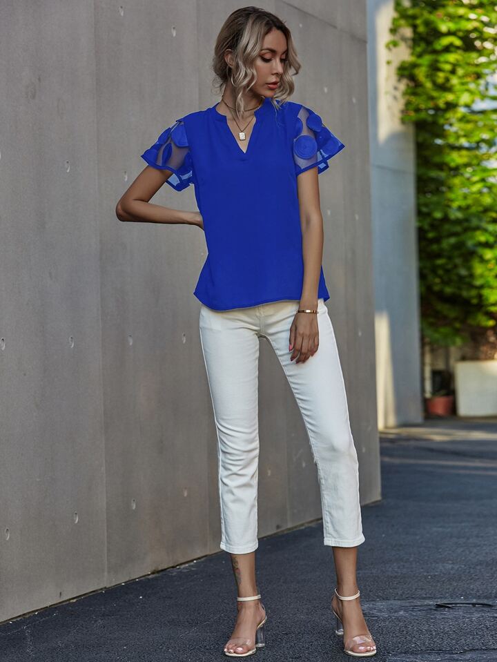 Blusas Malla en contraste Liso Azul eléctrico Casual