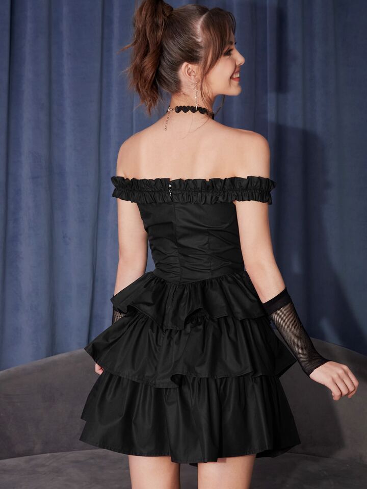 Vestido de hombros descubiertos ribete fruncido bajo a capas sin guantes