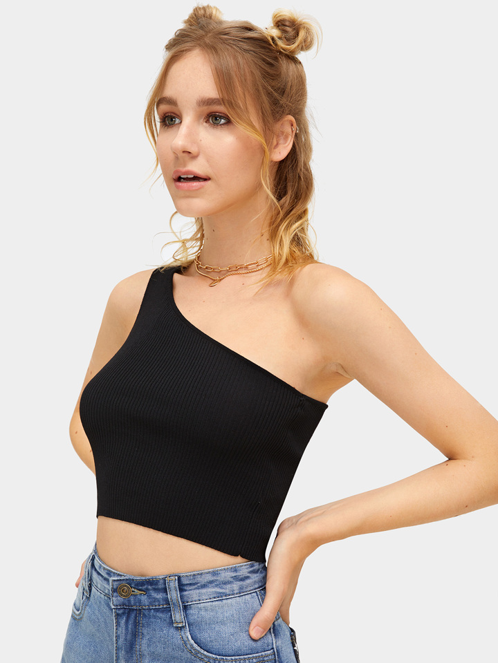 Top corto tejido de canalé con un hombro