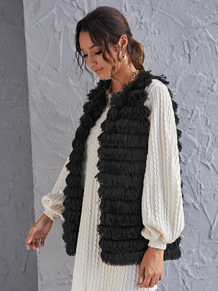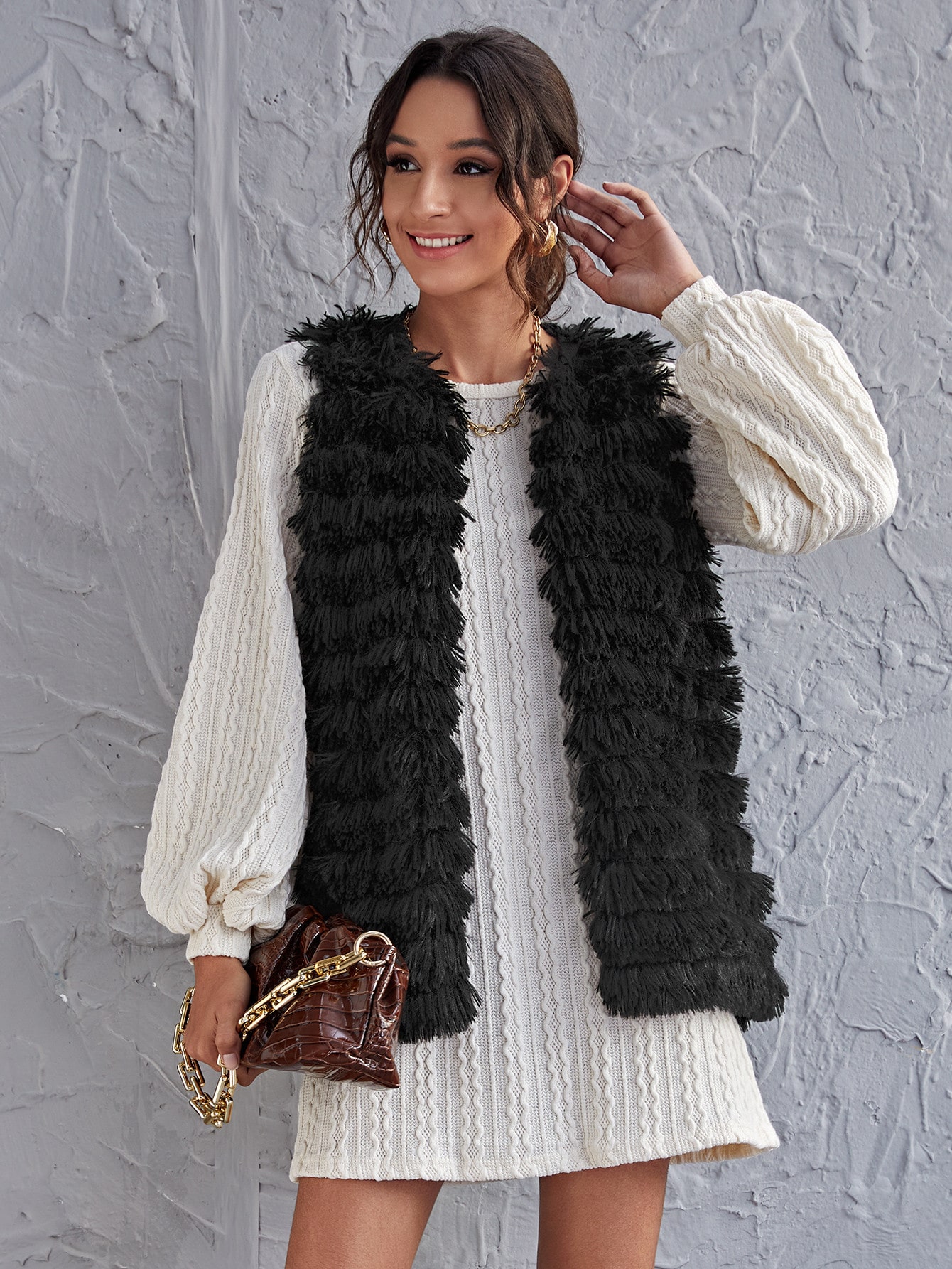 Chaqueta chaleco con pelo sintético de parte delantera abierta