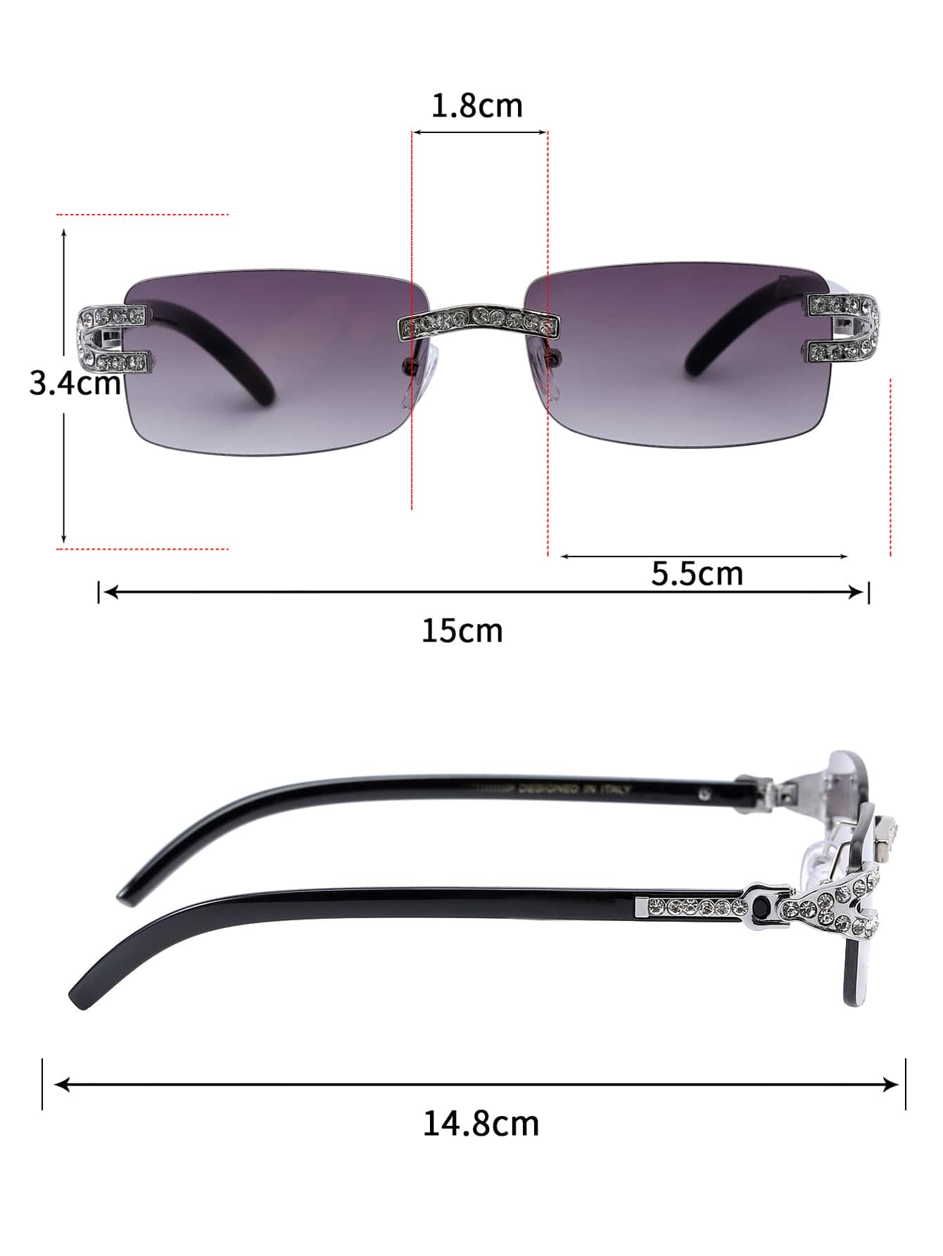 1 pieza Gafas de moda decorativas con diamantes de imitación sintéticos de POLASUP, lentes degradadas de material PC sin montura de estilo lujoso y único con correa antiperditaincluida, estuche y paño de limpieza para verano, playa, al aire libre y viajes