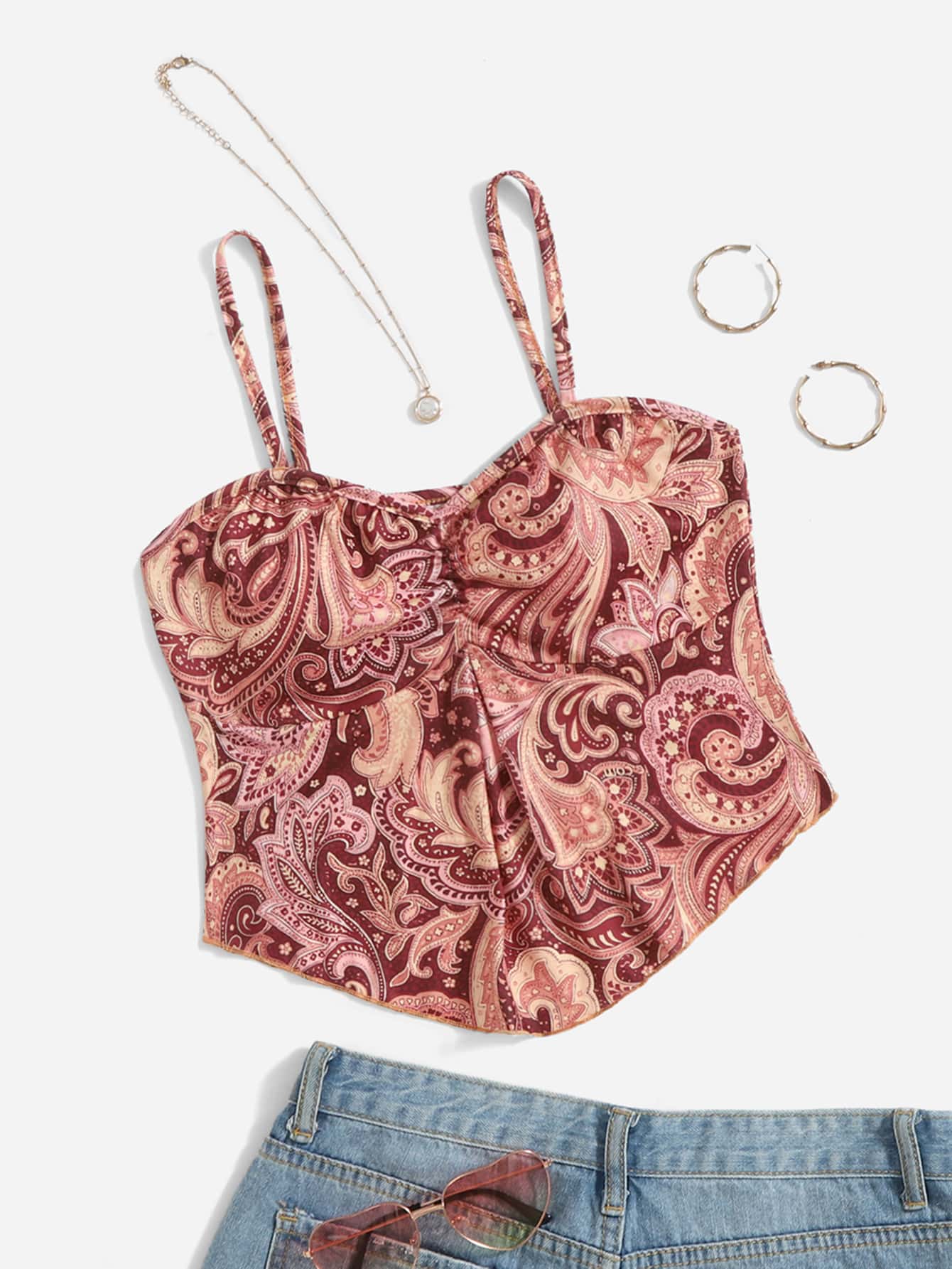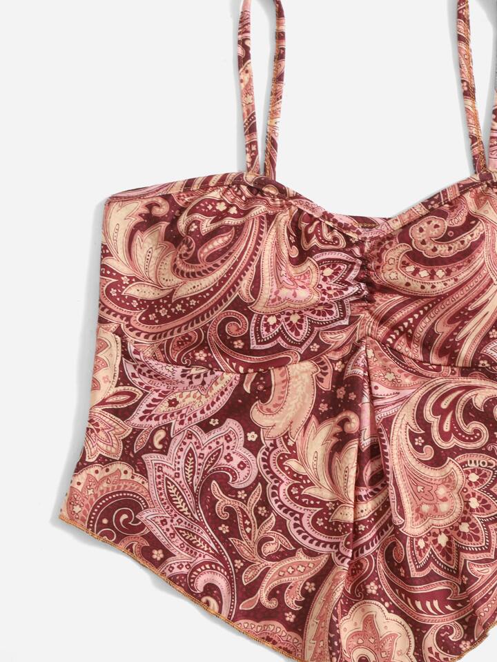 Top de tirantes con estampado de paisley bajo hanky