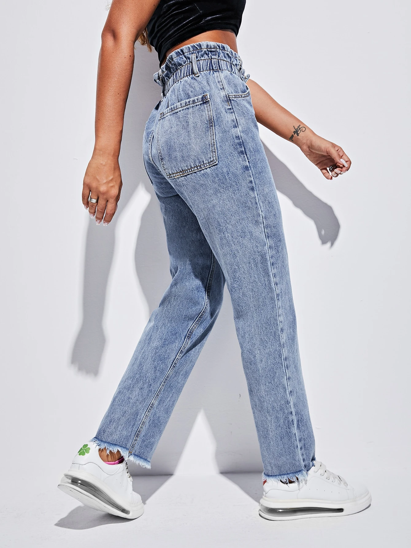 Jeans de cintura con volante bajo crudo con lavado