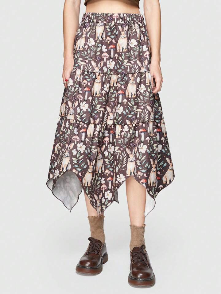 Pati Paints Falda Impresa De Dibujos Animados De Conejo Para Mujeres