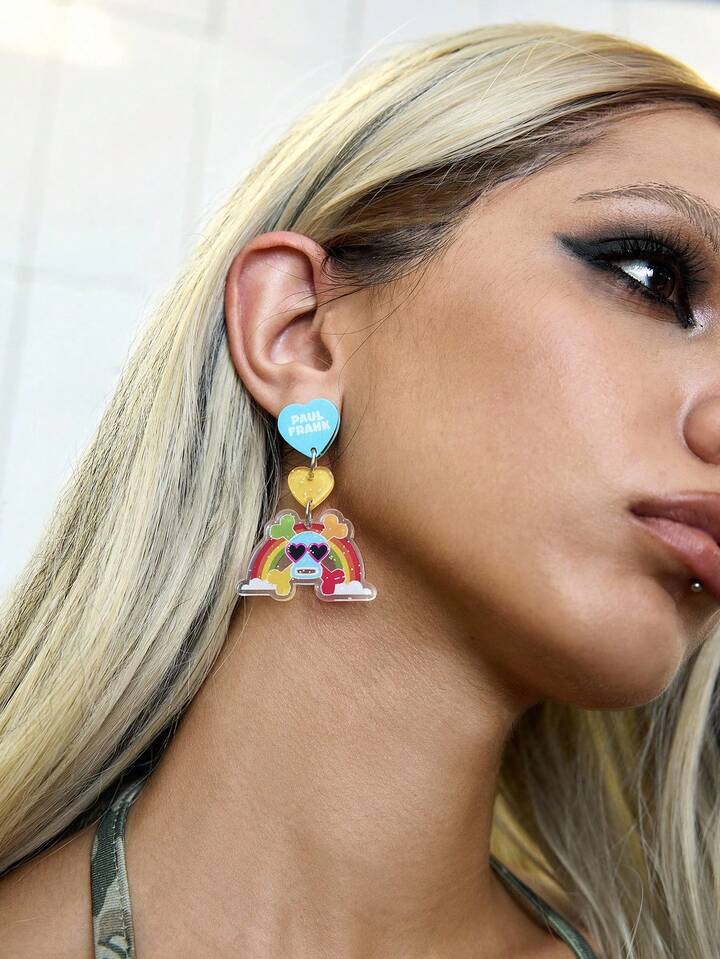Paul Frank X ROMWE 1 par de aretes colgantes de acrílico con diseño de corazón y mono