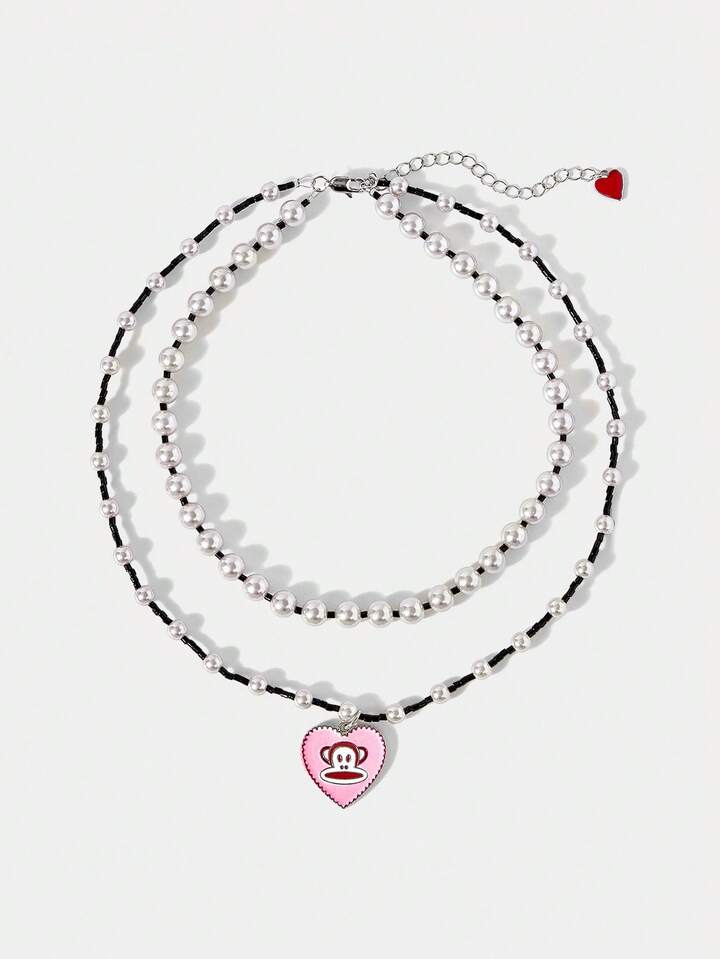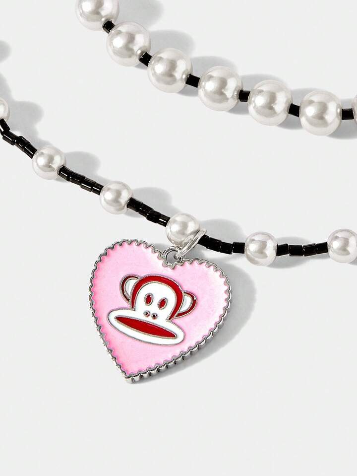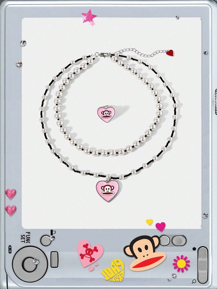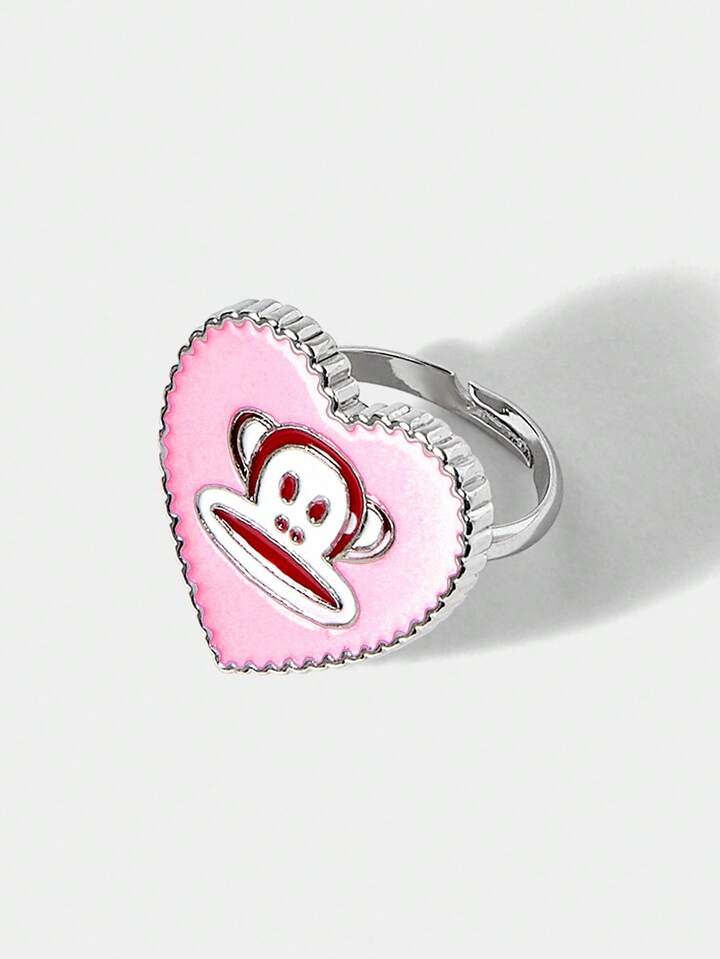 Paul Frank X ROMWE Conjunto de joyería de anillo y collar con diseño de corazón de dibujos animados